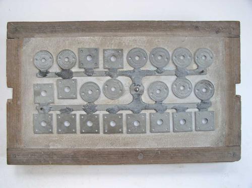 Gietmal met 11 stel rozetten voor scheepsdeurknoppen.