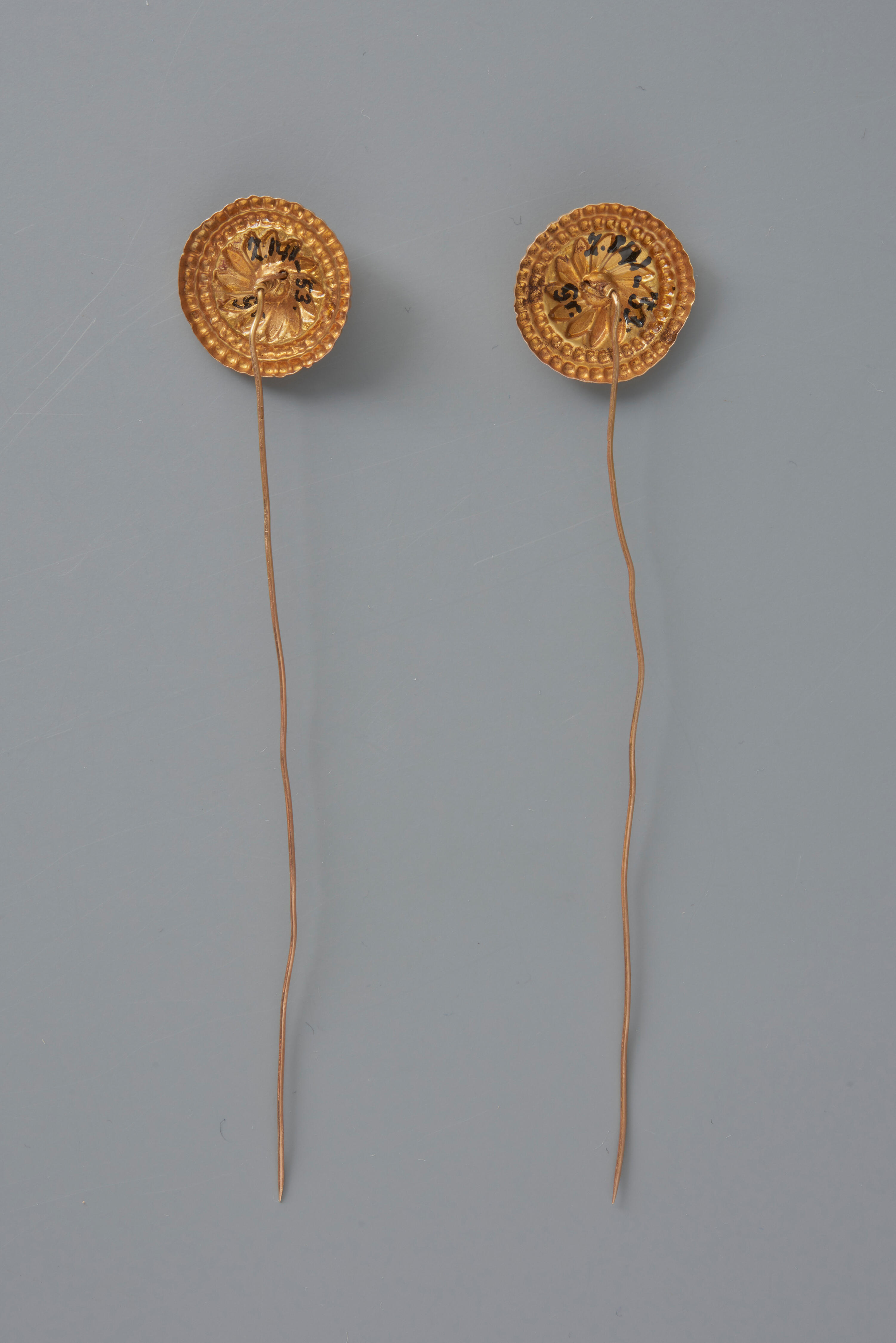 Paar gouden kapspelden, Drenthe, 1853–1906