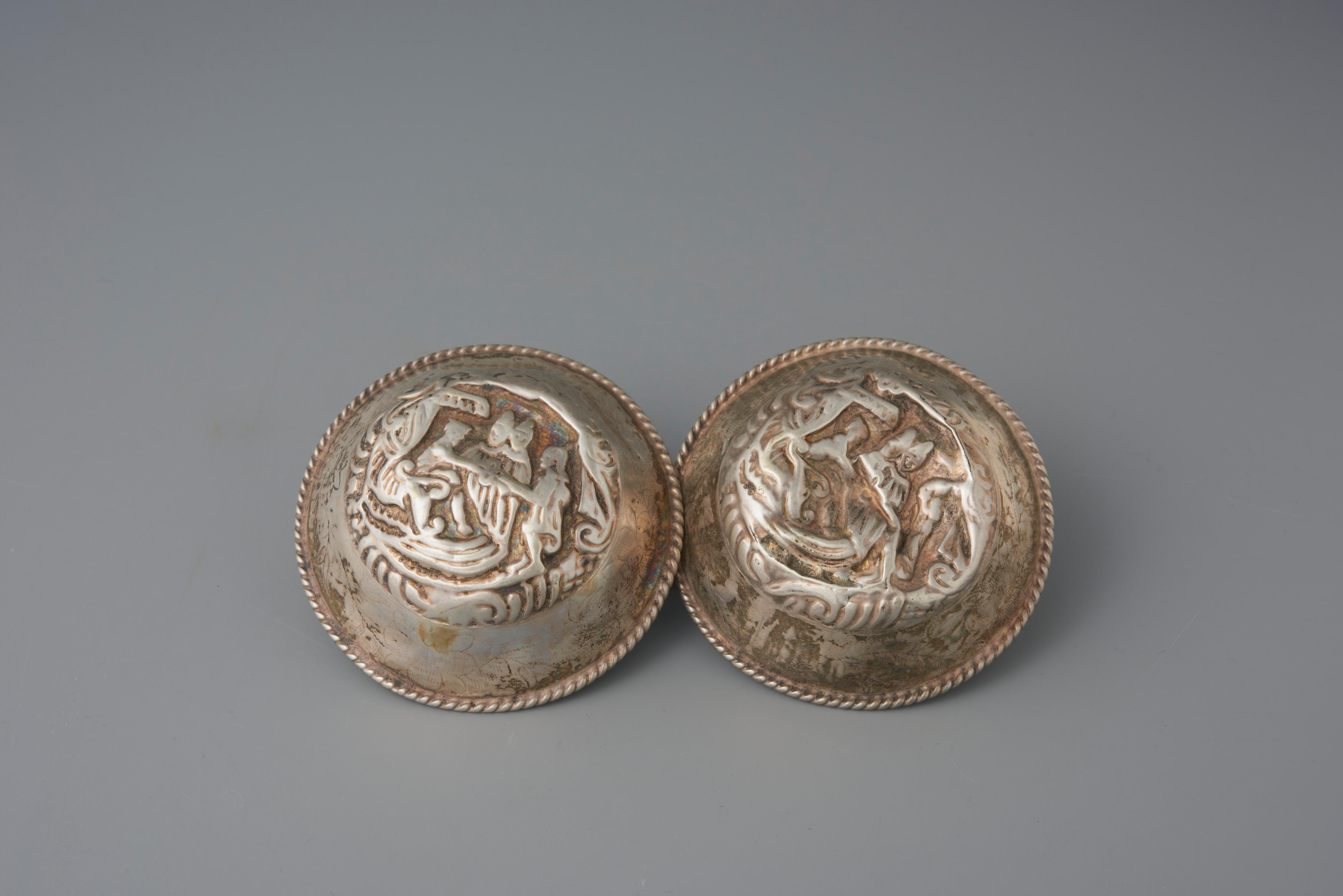 Paar zilveren mutsspelden, Drenthe, circa 1875