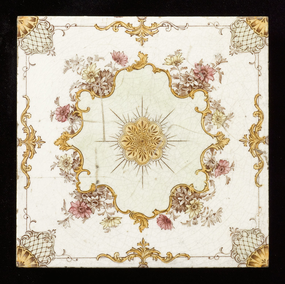 Tegel in transfer-techniek, met voorstelling: Orname...