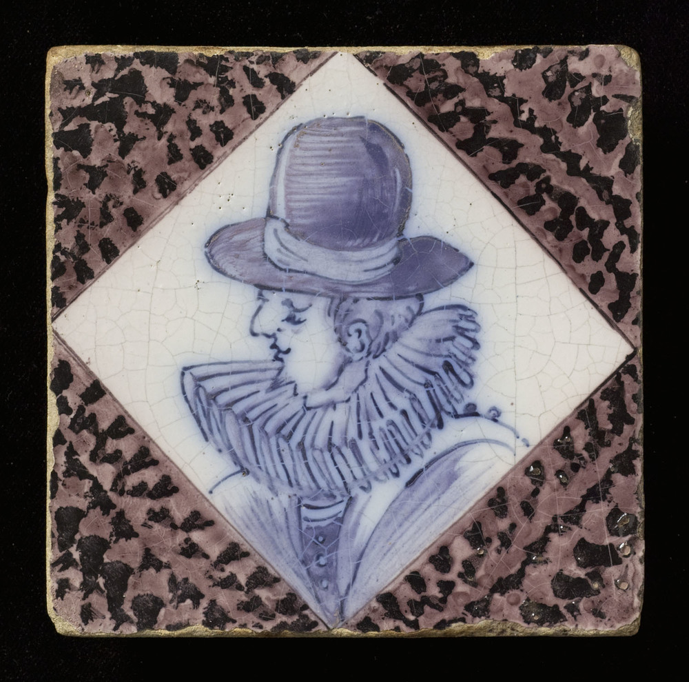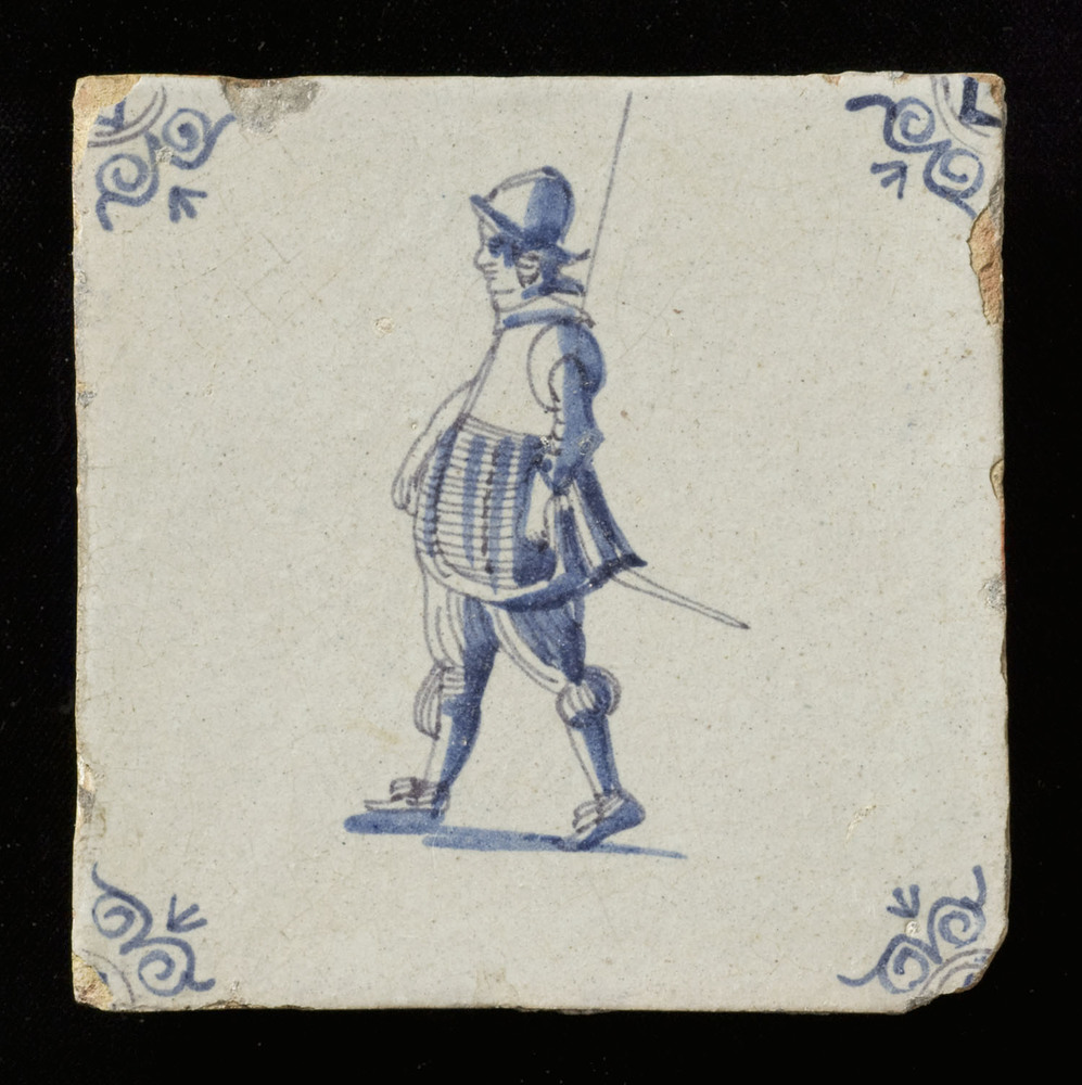 Tegel van keramiek, tinglazuur, voorstellende krijgs...