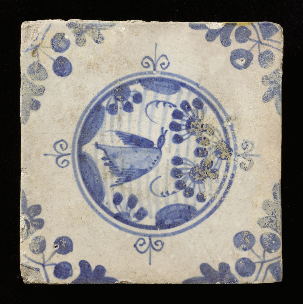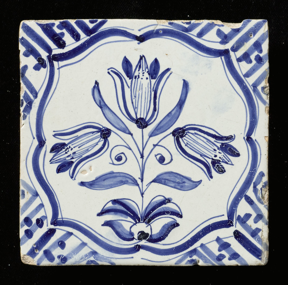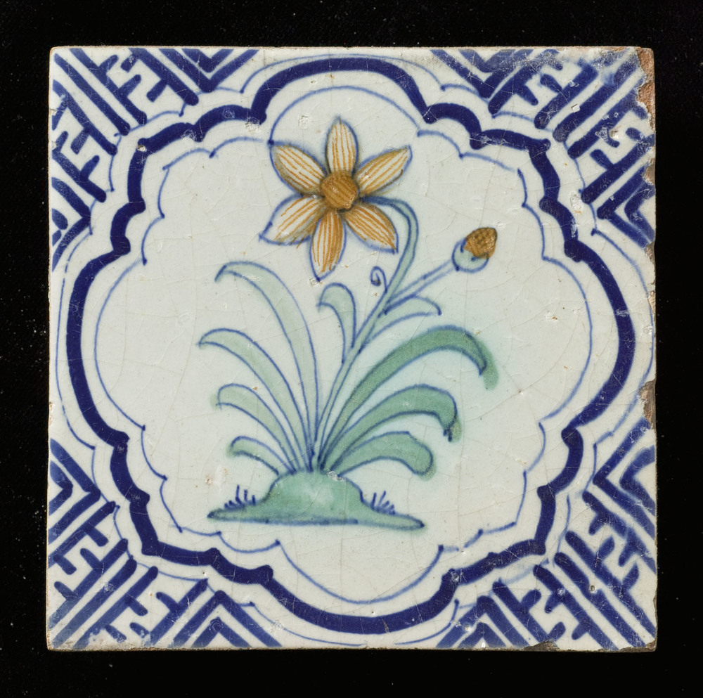 Tegel van keramiek, tinglazuur, voorstellende een bl...