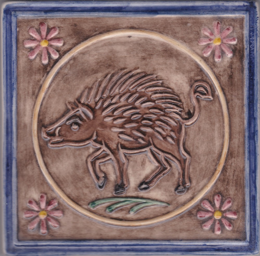 Tegel, beschilderd, niet gebakken, voorstellende por...