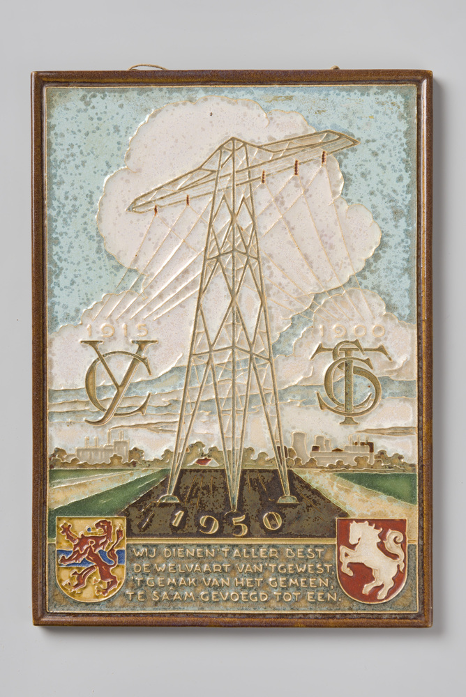 Tegel in cloisonné-techniek, met voorstelling: Hoogs...