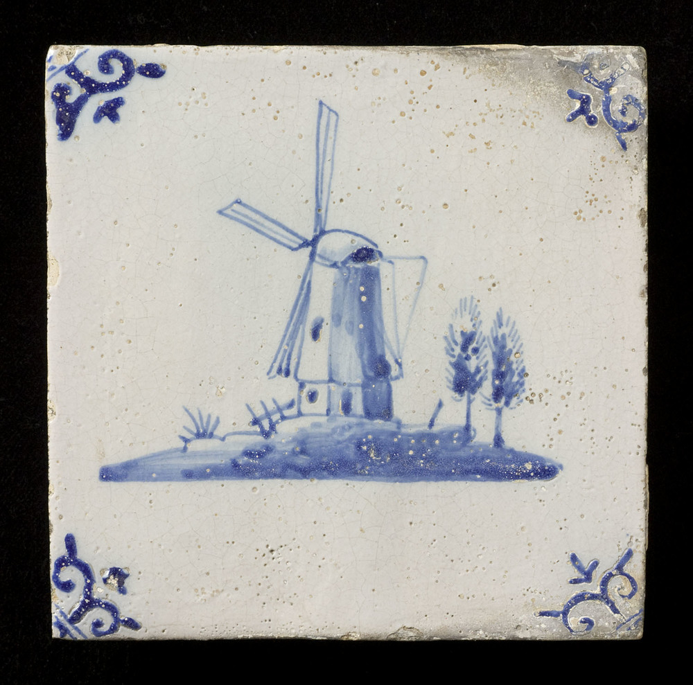 tegel van aardewerk in onderglazuur, voorstellende: ...