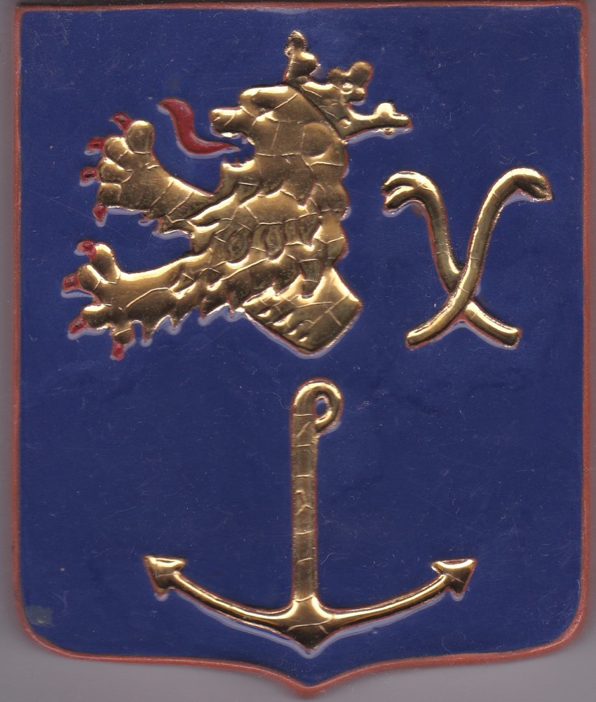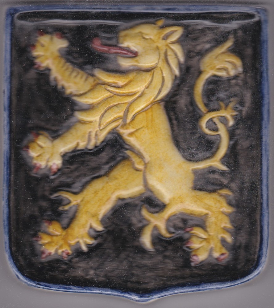 Tegel in cloisonné-techniek, met voorstelling: wapen...