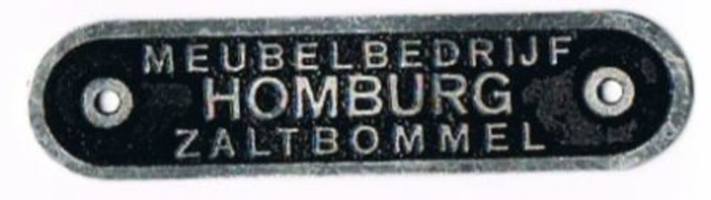 metalen plaatje van meubelbedrijf Homburg te Zaltbom...