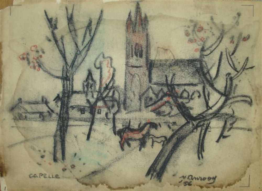 tekening in zwart en rood krijt,Capelle 1956 Jan van...