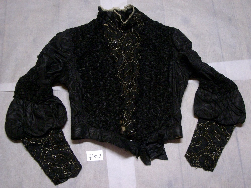zwart jasje van moiré zijde geborduurd met zwart zij...