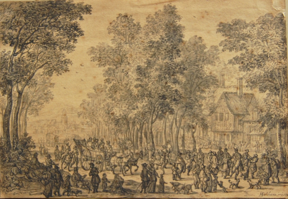 De Dorpskermis op open plek omgeven door geboomte. T...