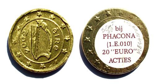 Chocolade munten, 1 €, ‘EIRE 2002’. ‘1 EURO’