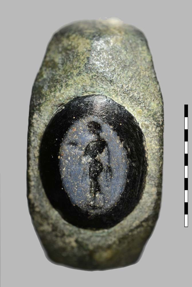 Ring van brons met gem van glas uit de Romeinse tijd