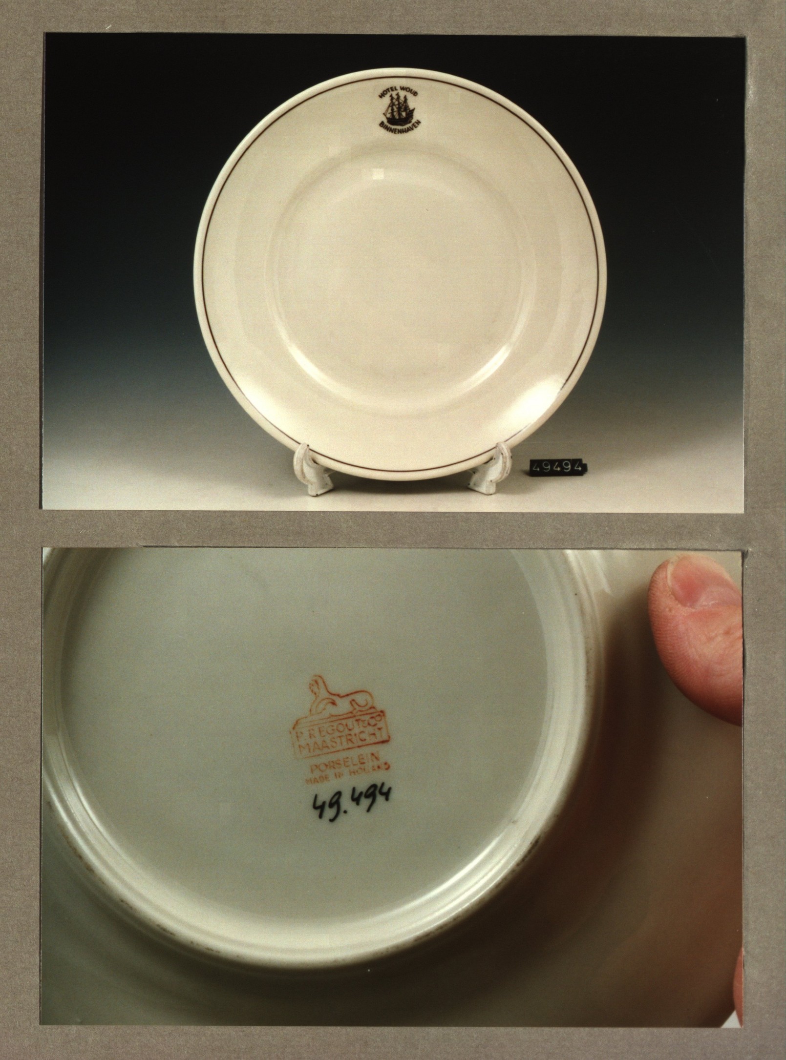 Diep bord, model P met decor Hotel de l'Europe Amste...