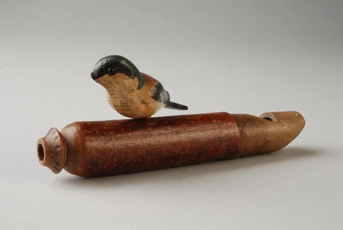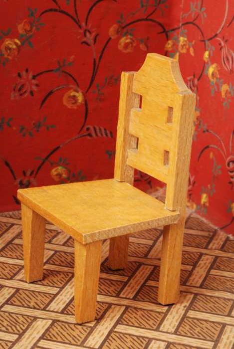 Beukenhouten miniatuur stoel met opengewerkte rugleu...