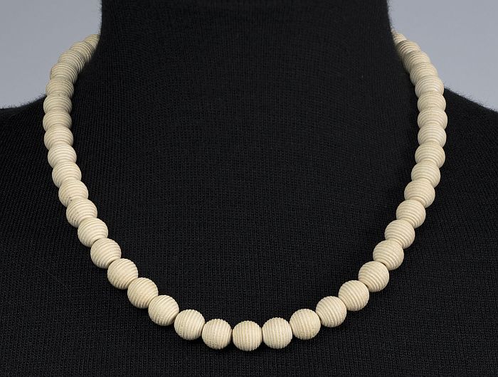 Kralensnoer van ronde naturelkleurige houten kralen ...
