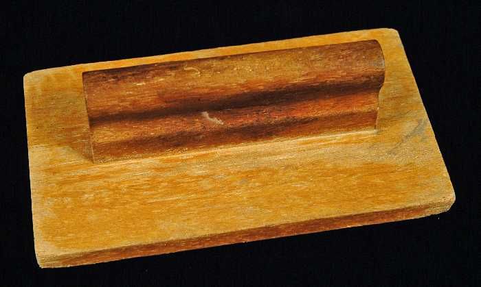 Rechthoekige houten pillenstempel, gebruikt in apotheek