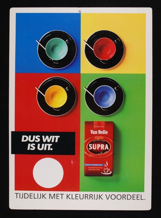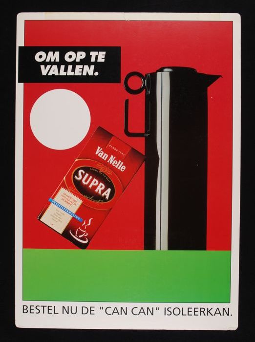 Reclamebord Van Nelle met uitroepteken voor vier soo...