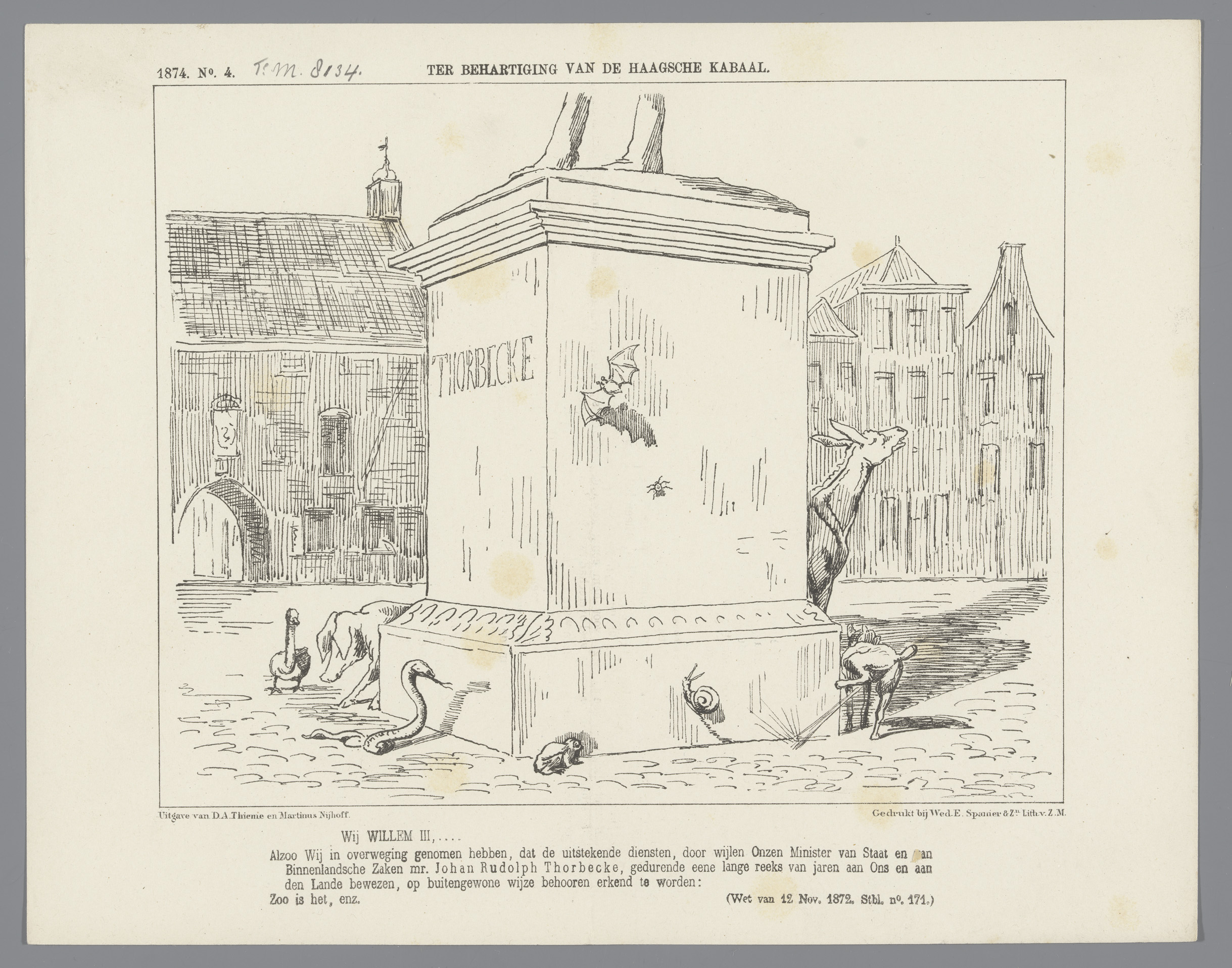 Spotprent op kamerlid Wintgens, 1873