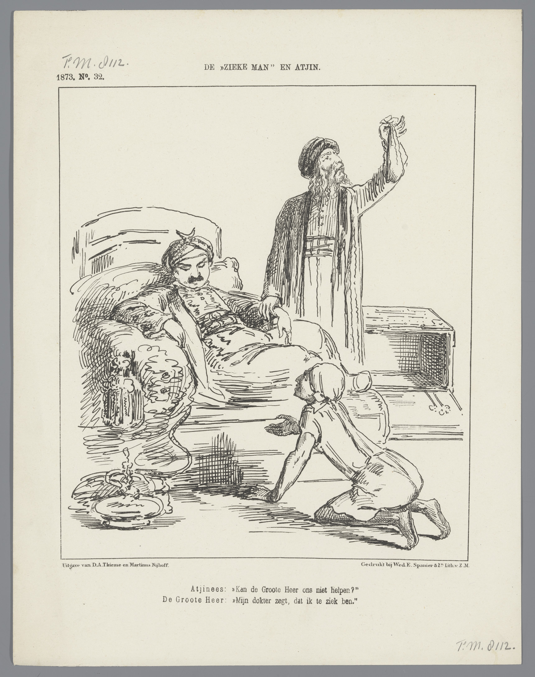 Spotprent op de rede van Van Nispen waarin hij klaag...