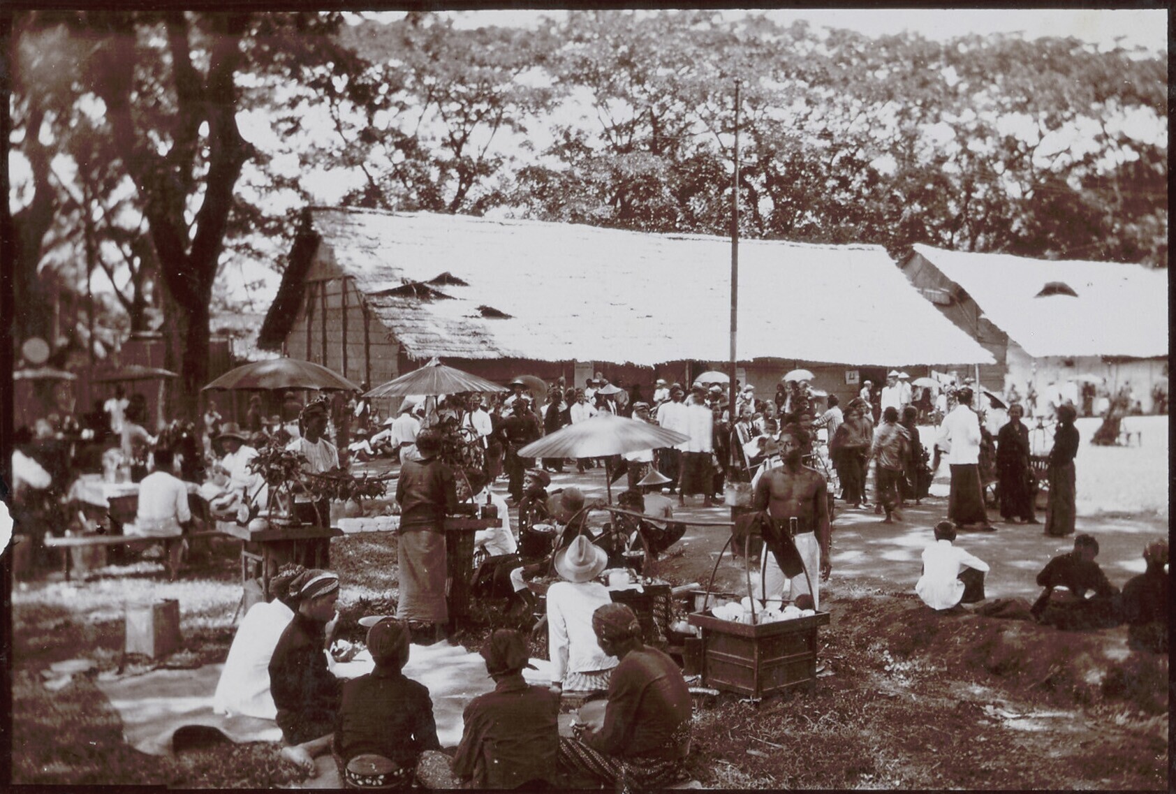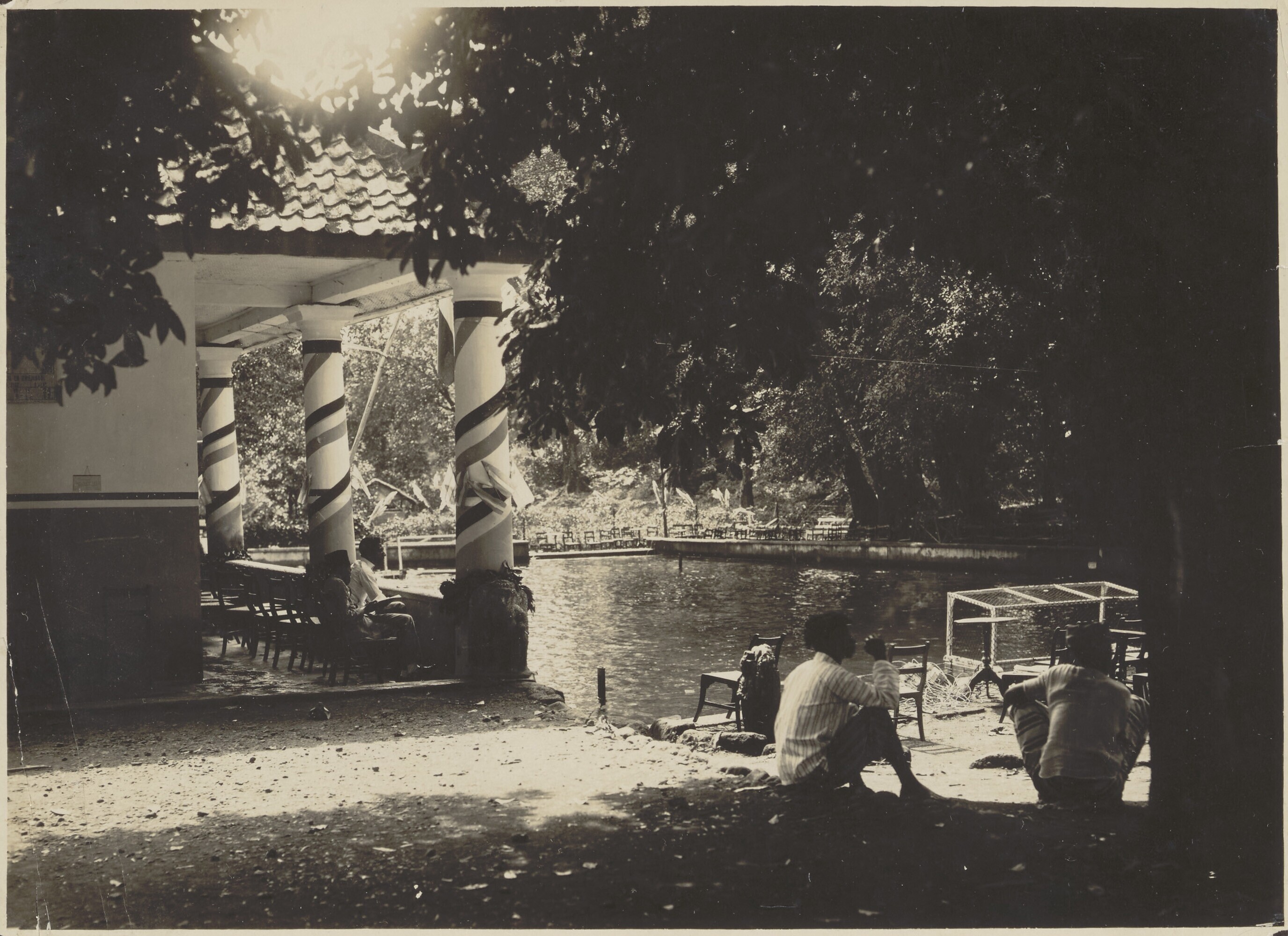 Feestelijk versierde badplaats Banjoe Biroe (Blauw W...