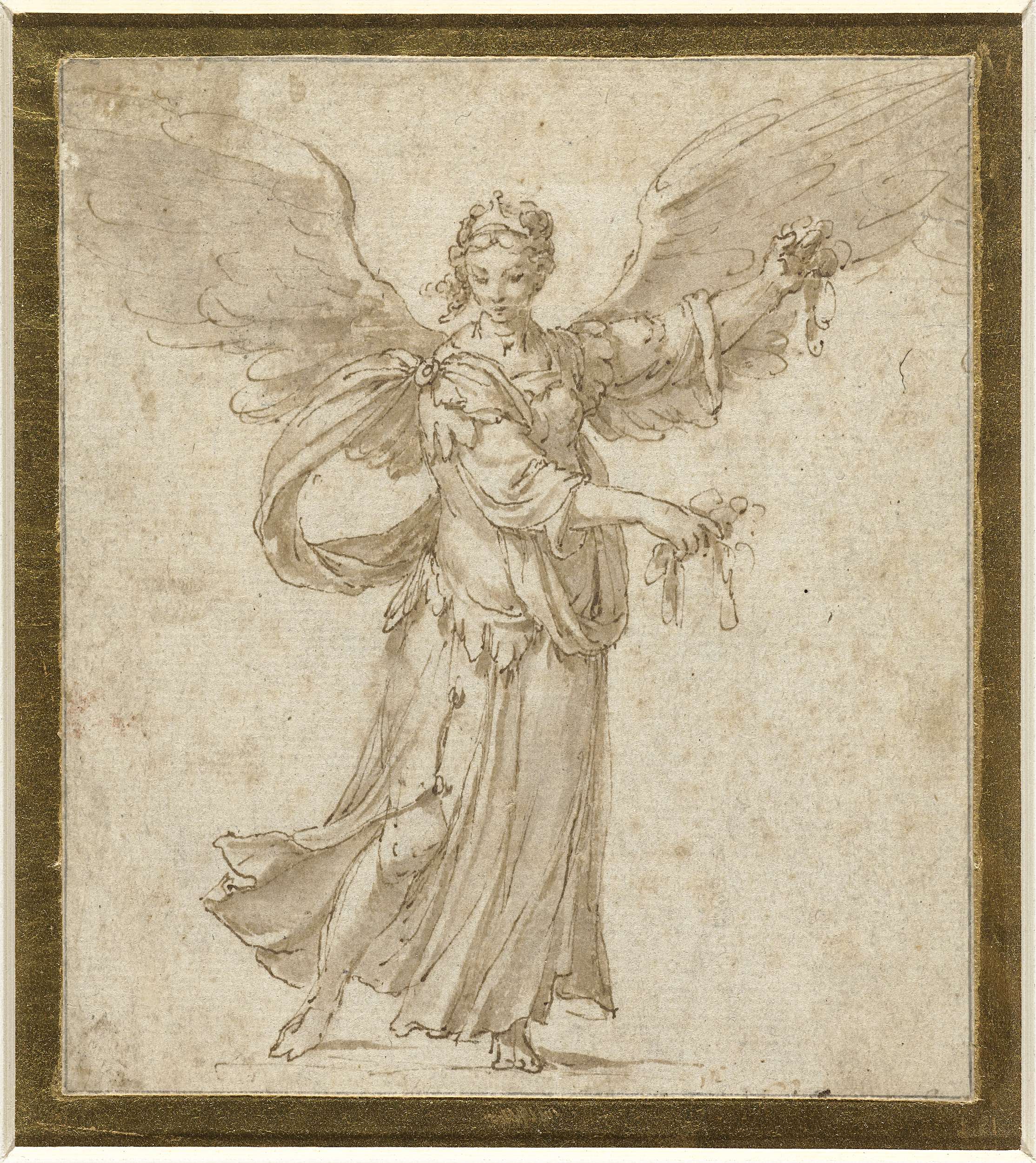 Staande engel, met gespreide vleugels