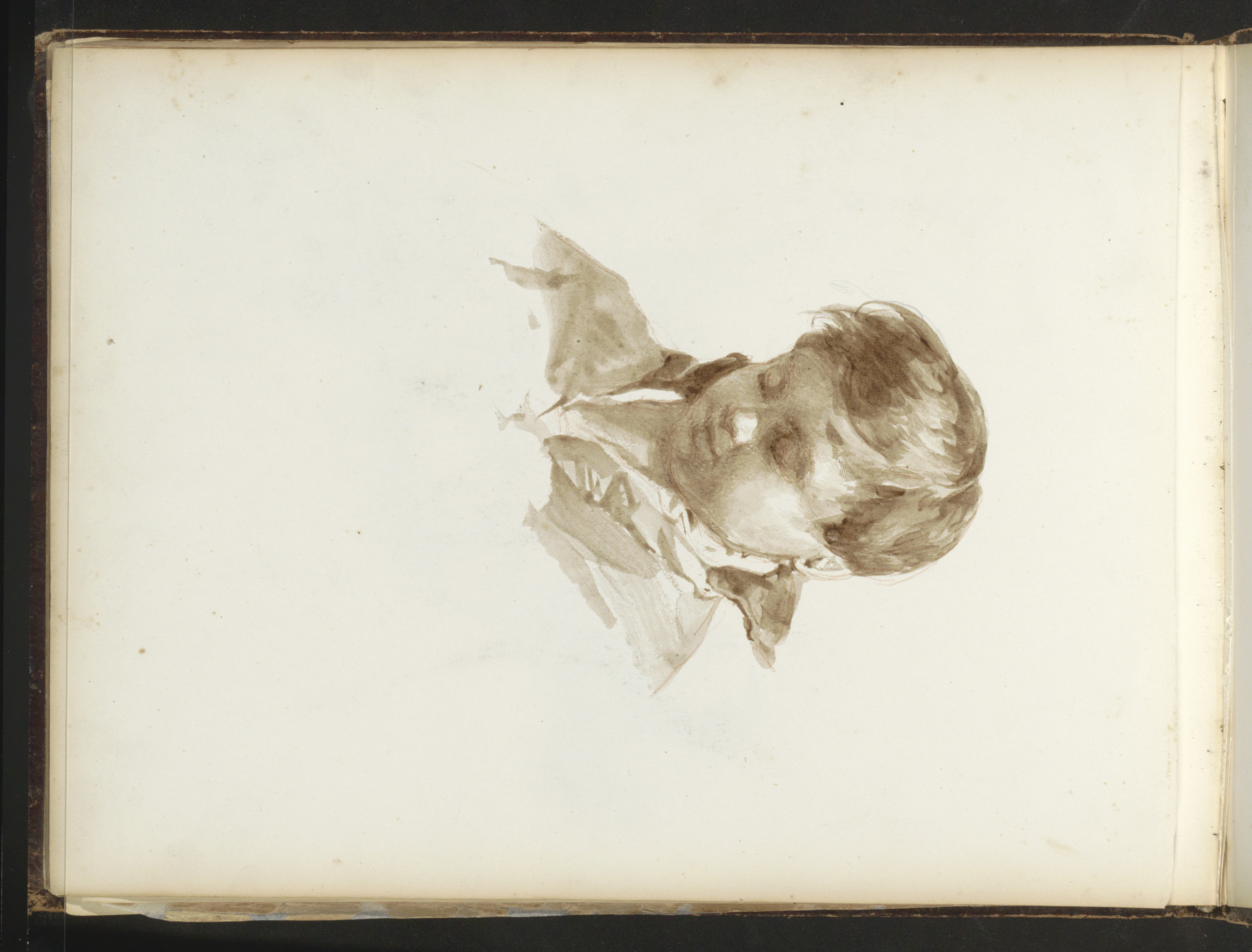 Kop van een jongen met neergeslagen ogen