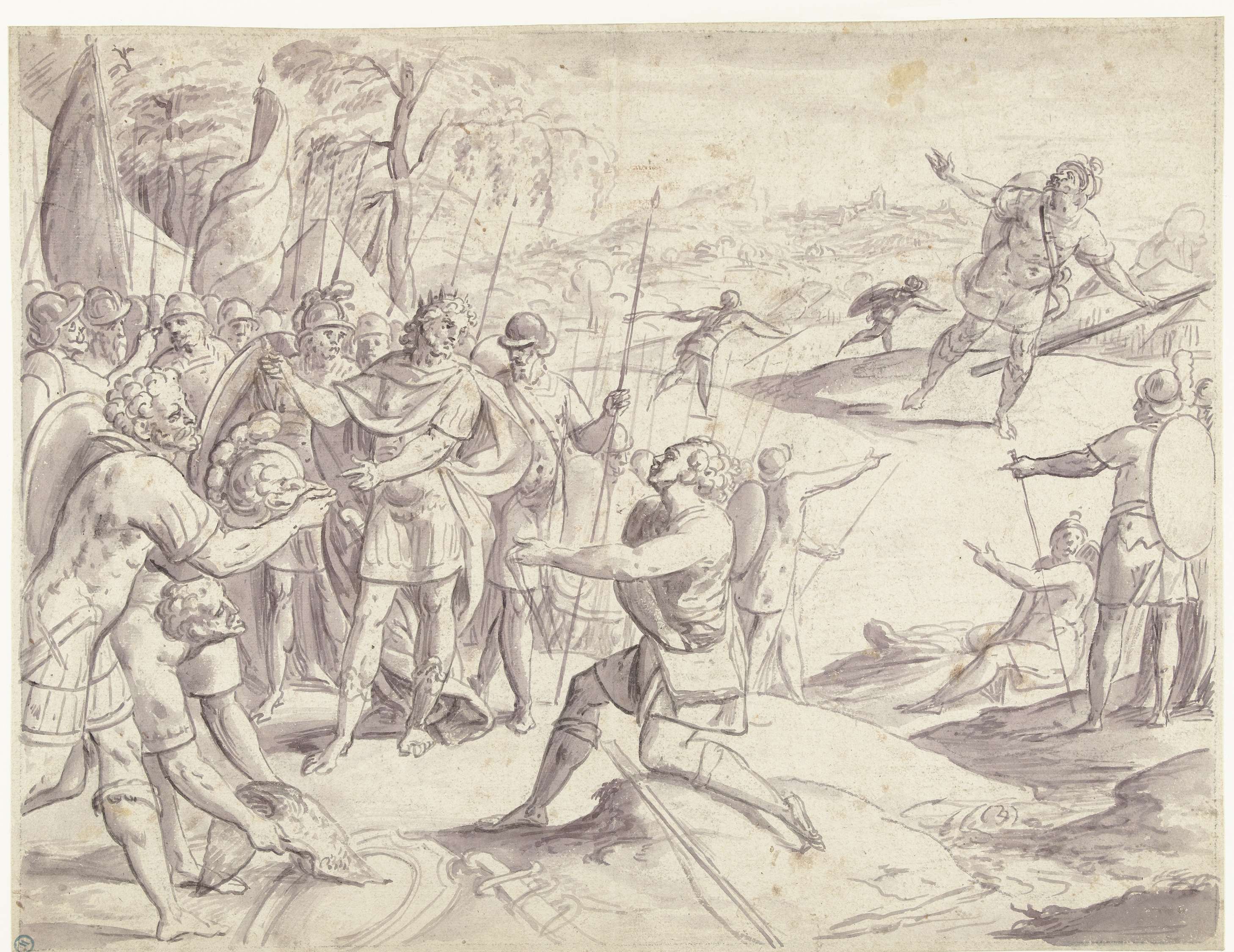 David vraagt aan Saul toestemming om tegen Goliath t...