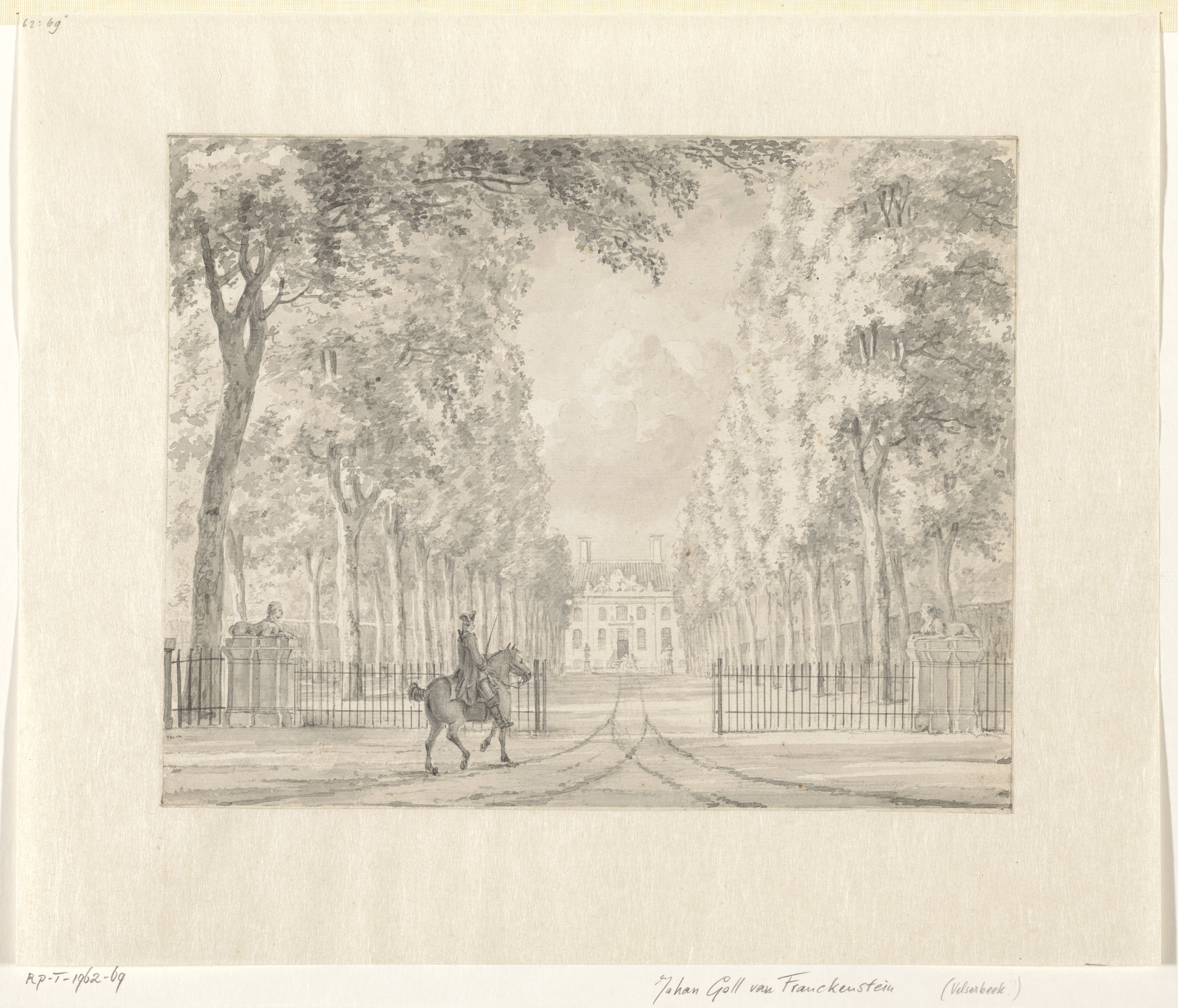 Ruiter voor het hek van een buitenplaats (Velserbeek?)