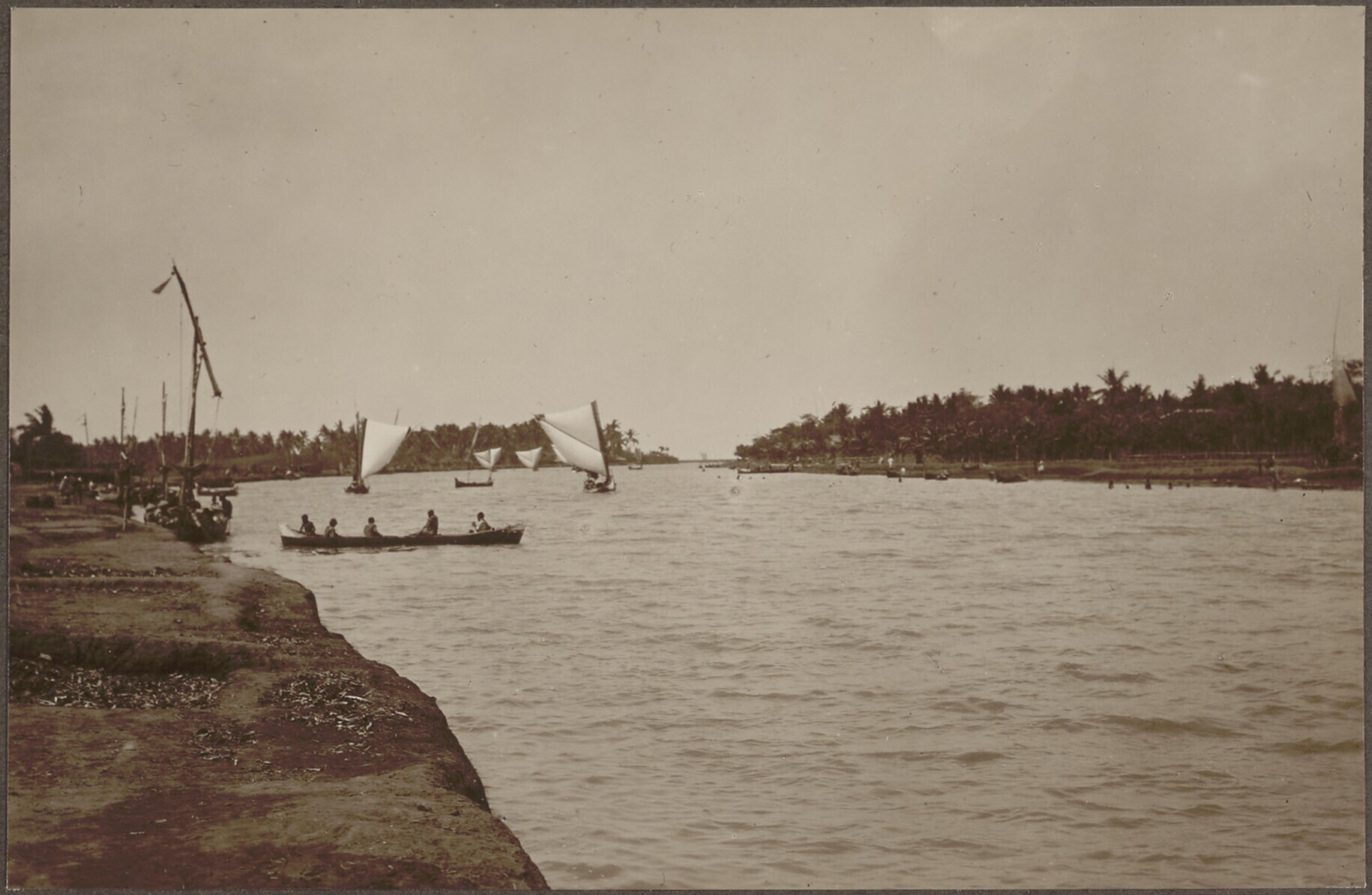 Boten in de monding van de Kali Pemali bij het visse...