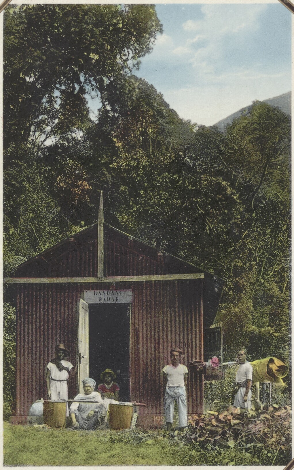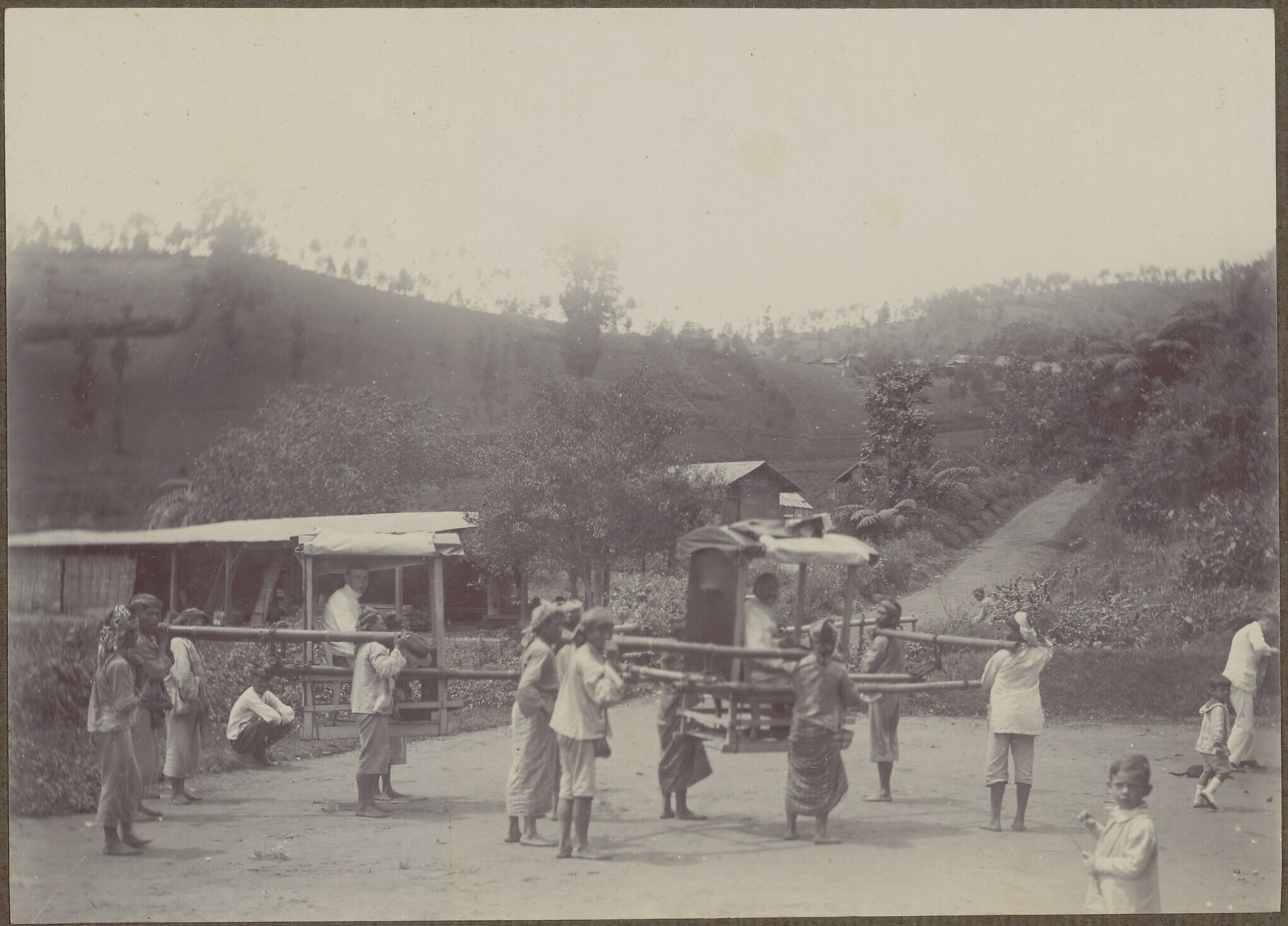 Javaanse verkopers voor de berghut 'Kandang Badak' o...