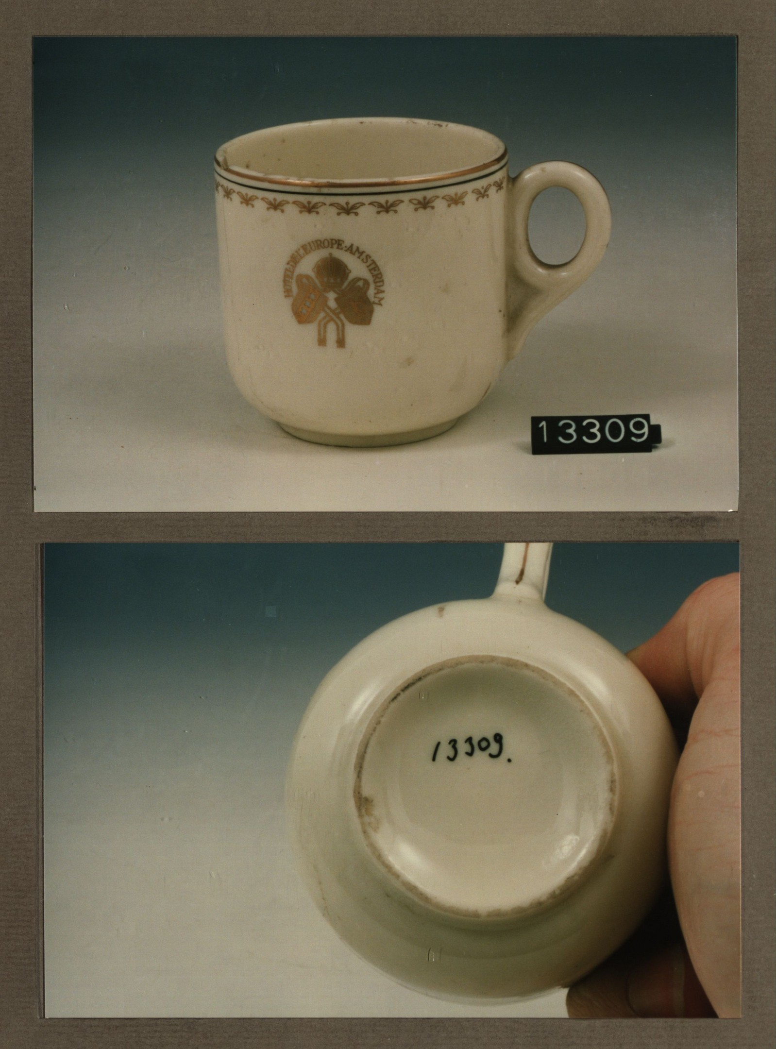 Kop met opschrift, model SMN met decor Amicitas Fortic