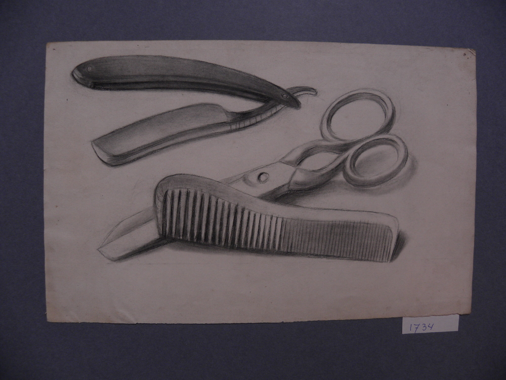 Potloodtekening op papier met watermerk.