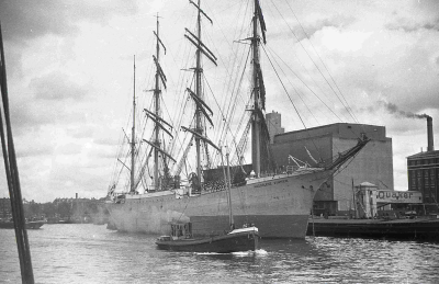 Viermastbark Magdalene Vinnen uit Bremen in de haven...