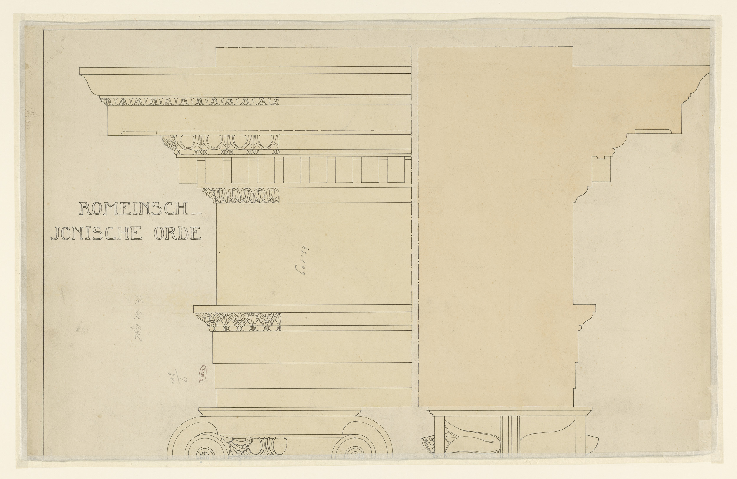 Architraaf, fries en kroonlijst van Romeins-Ionische...