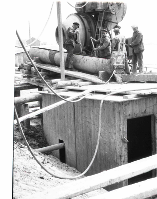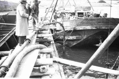 Pomp die wordt gebruikt bij werkzaamheden in de have...