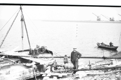 Werkzaamheden in de haven van Enkhuizen.