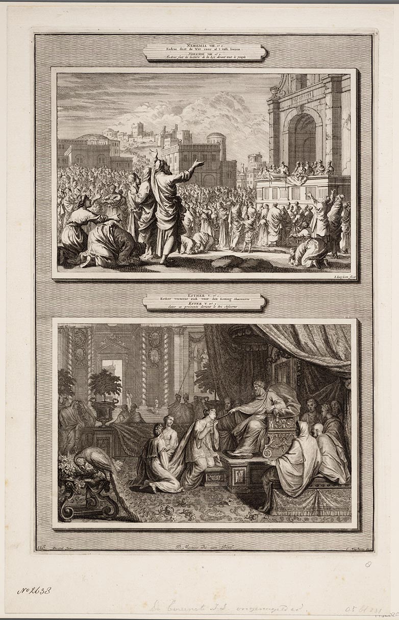 Esdras doet de wet voor al ´t volk leezen, Esther vo...