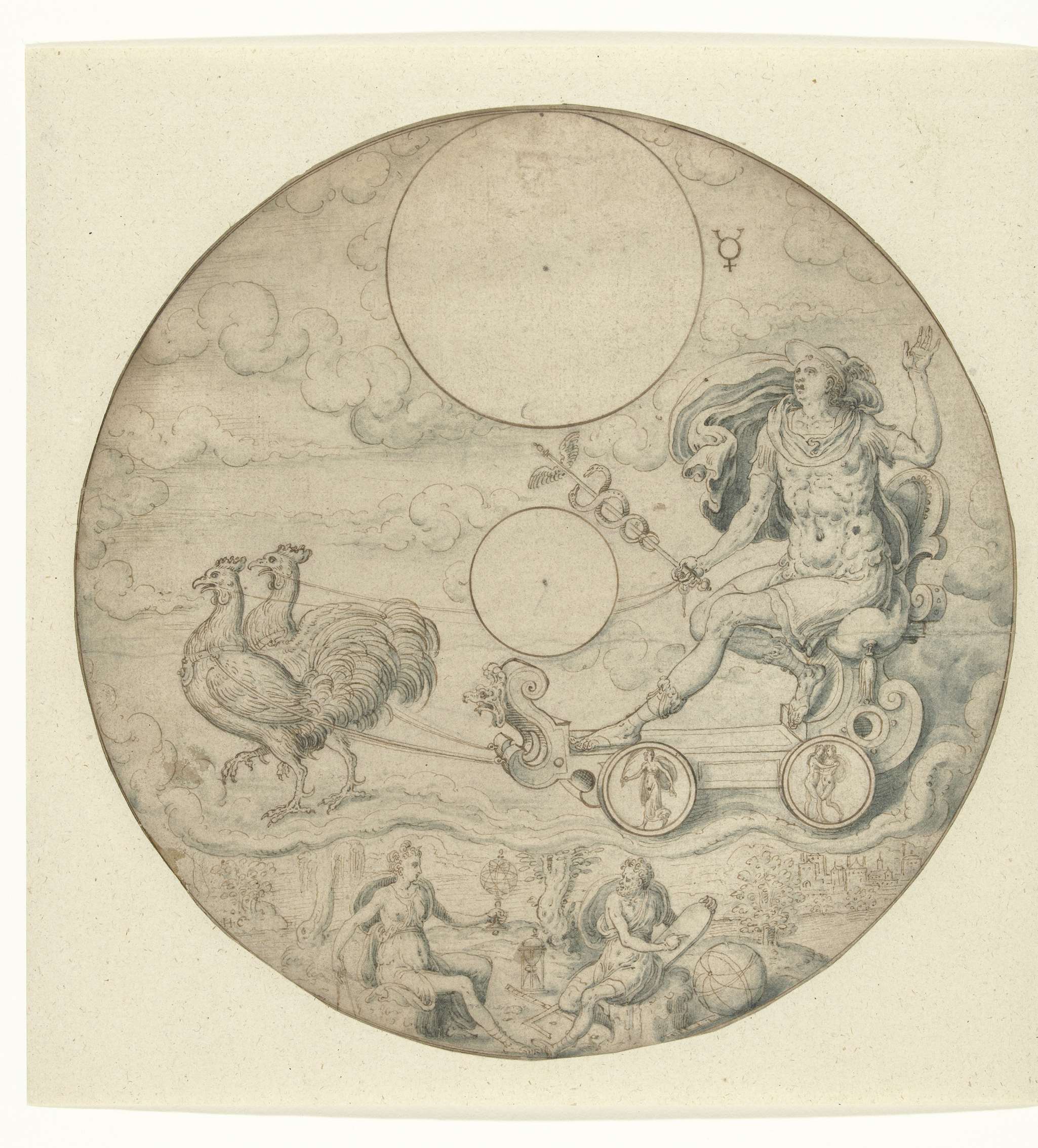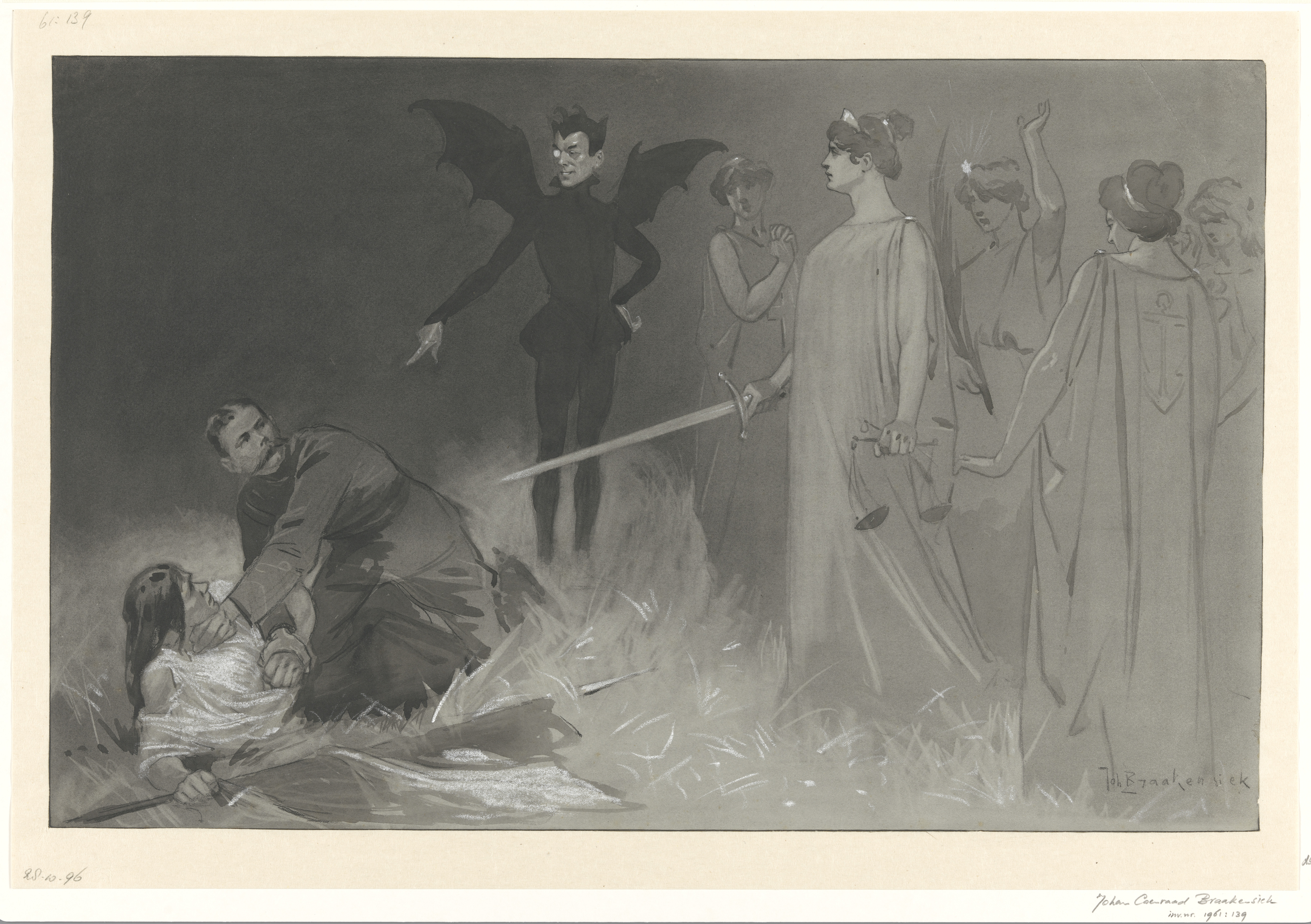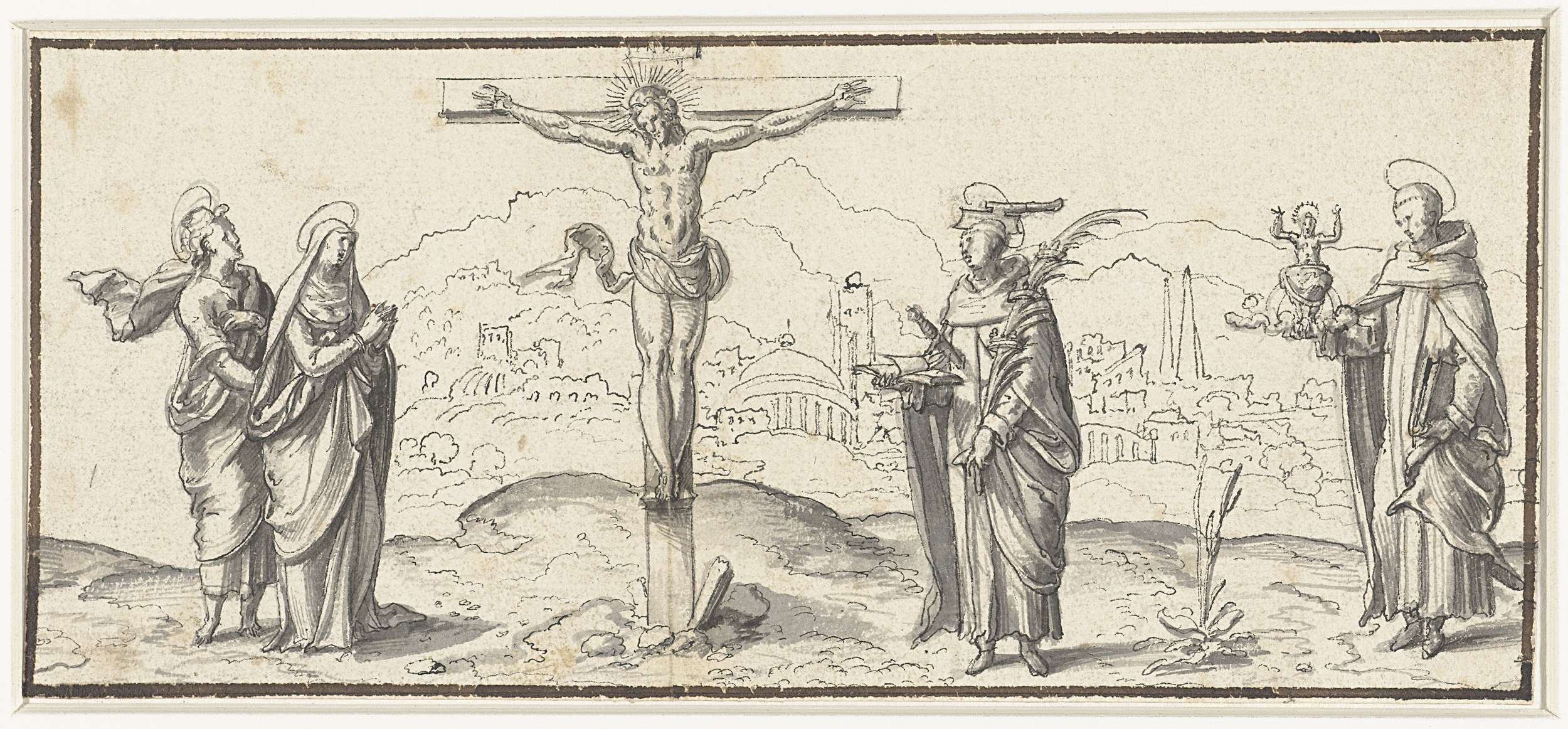 Ontwerp voor een graflegging met links de wenende Maria