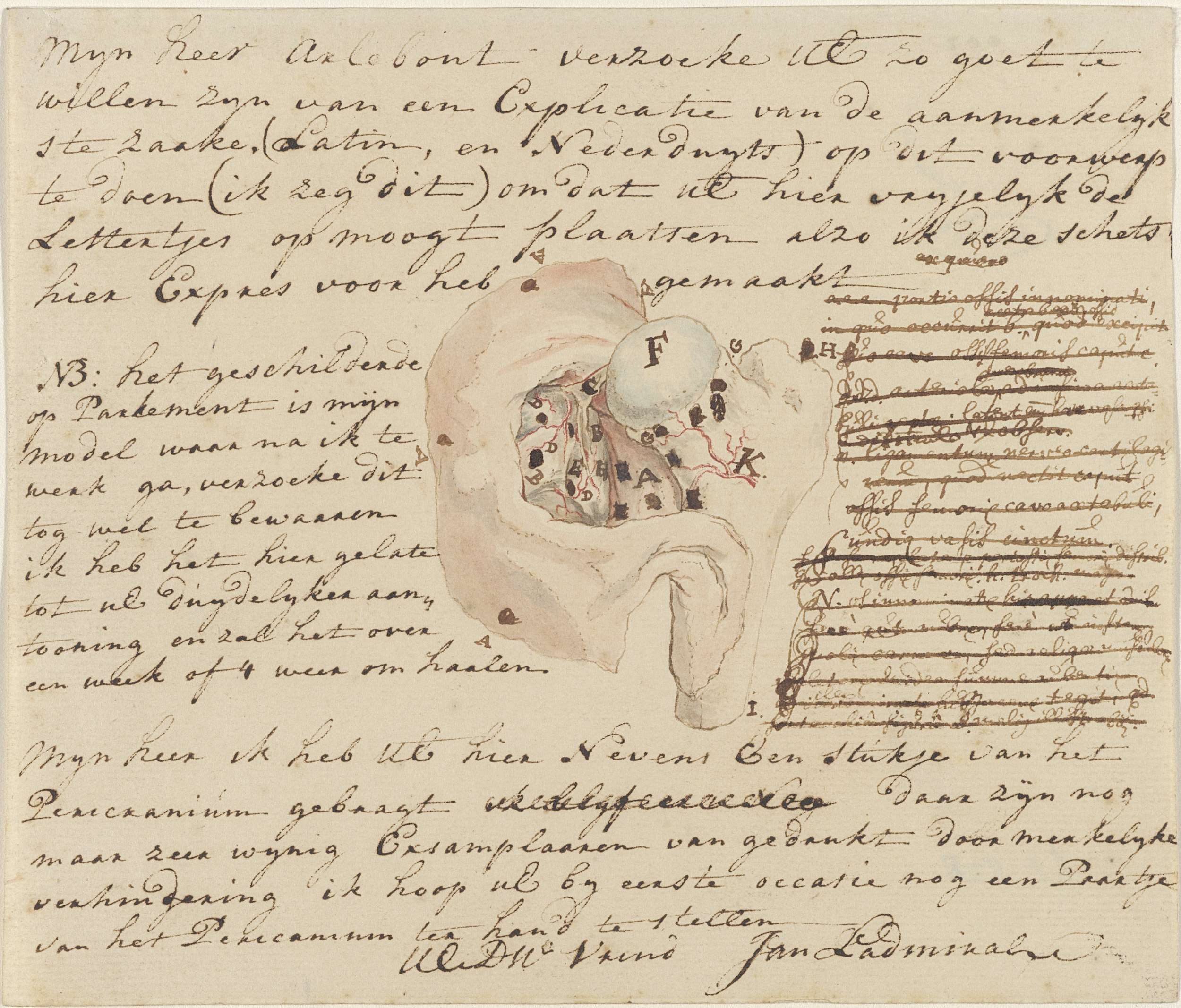 Brief met een kleine anatomische schets van het mens...