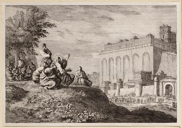 De discipelen toonen Iesus den tempel