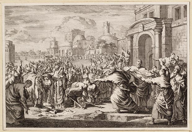 De Lystriers brengen ossen aan om die aan Paulus op ...