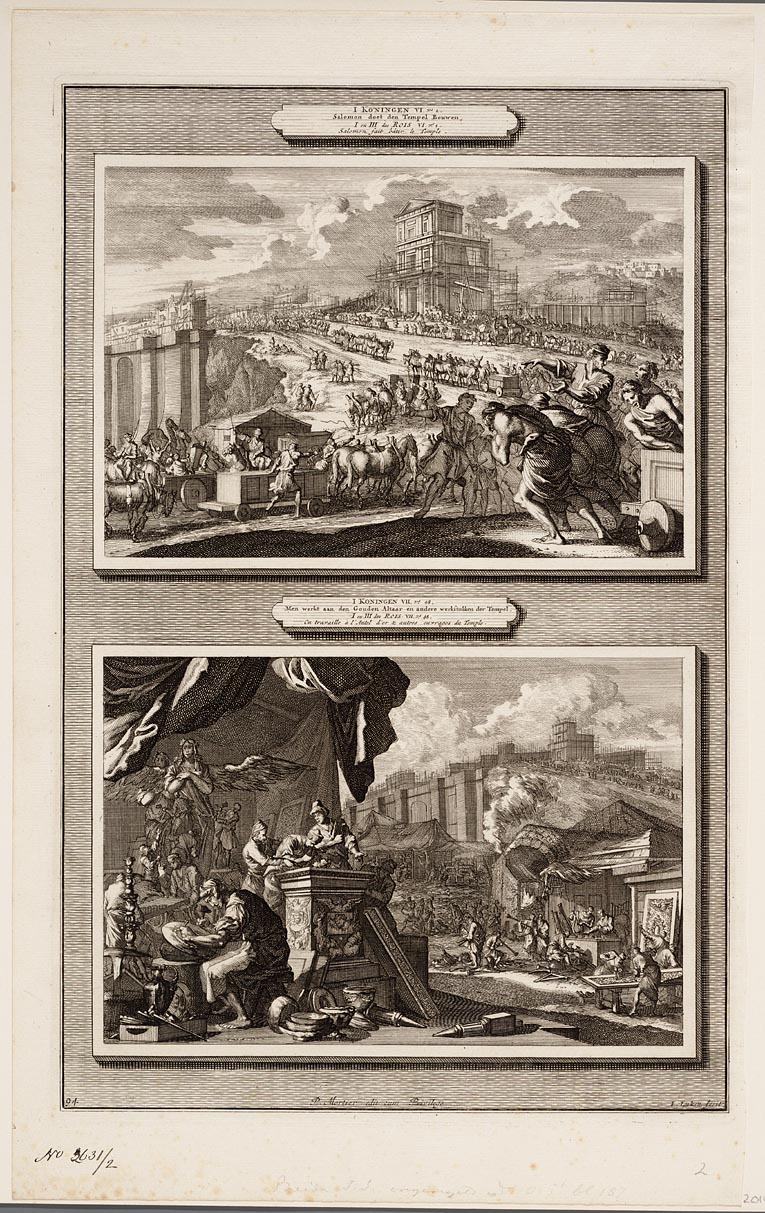 Salomon doet den tempel bouwen, Men werkt aan den go...