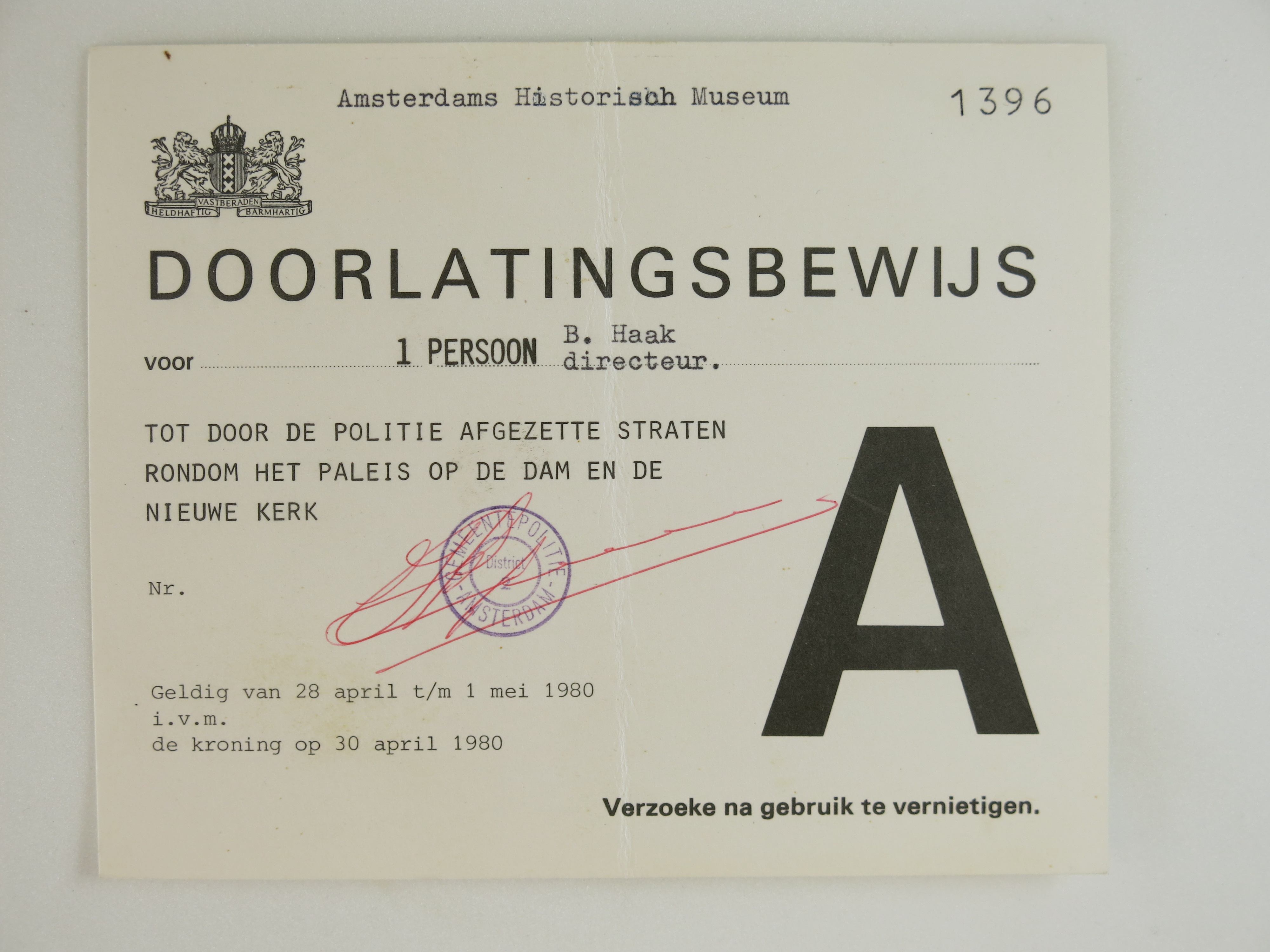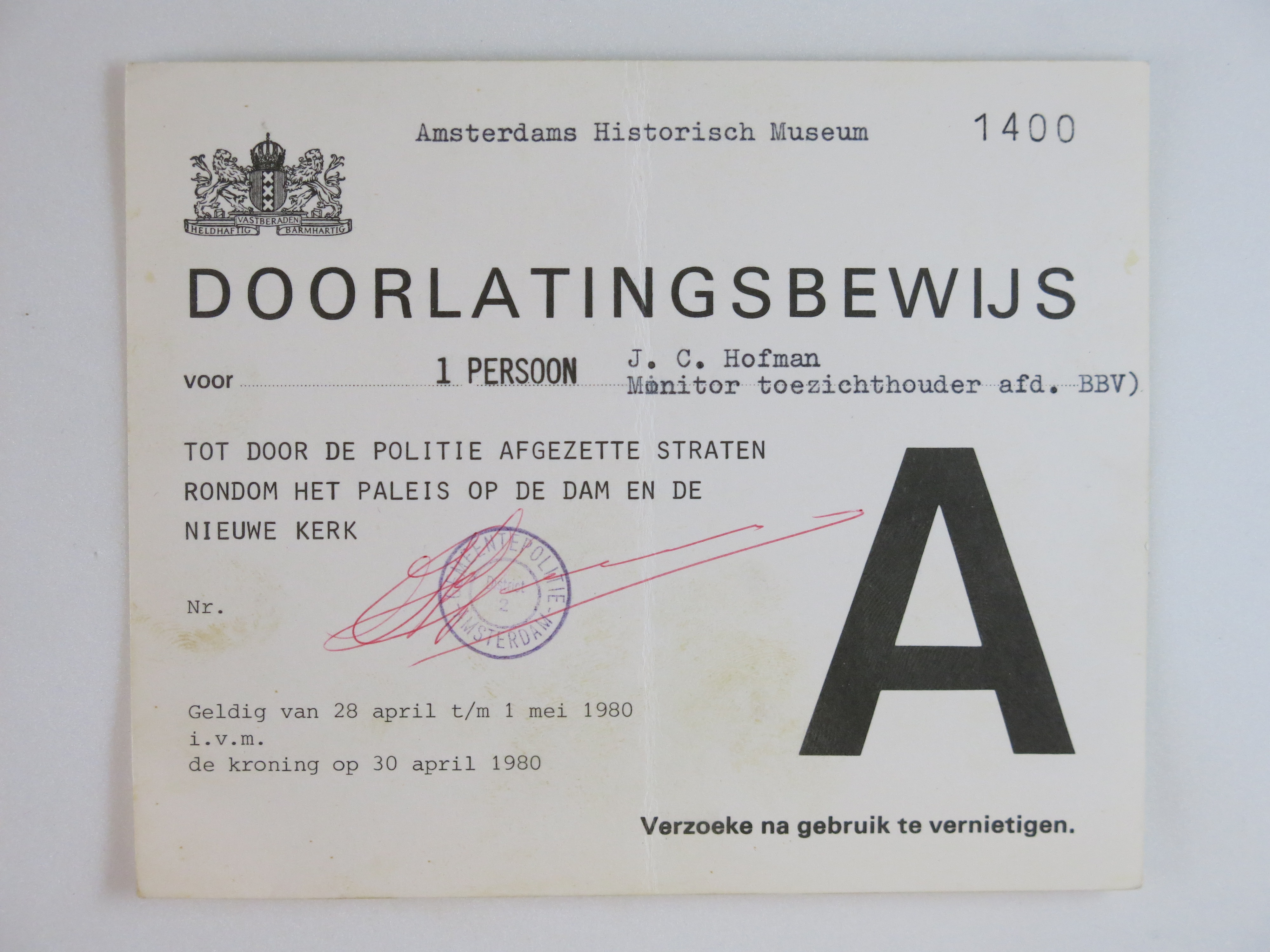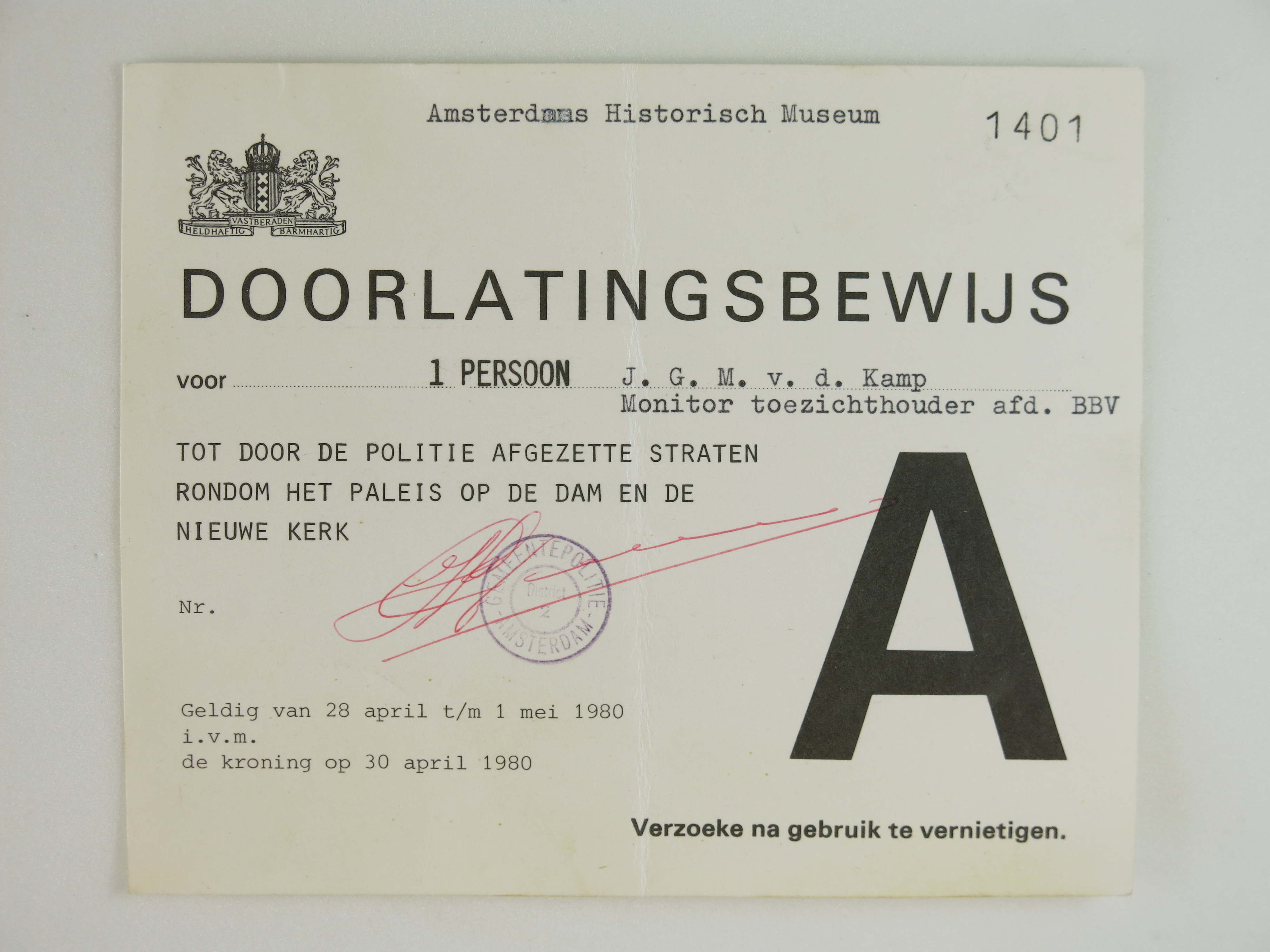 Doorlatingsbewijs tot door politie afgezette straten...