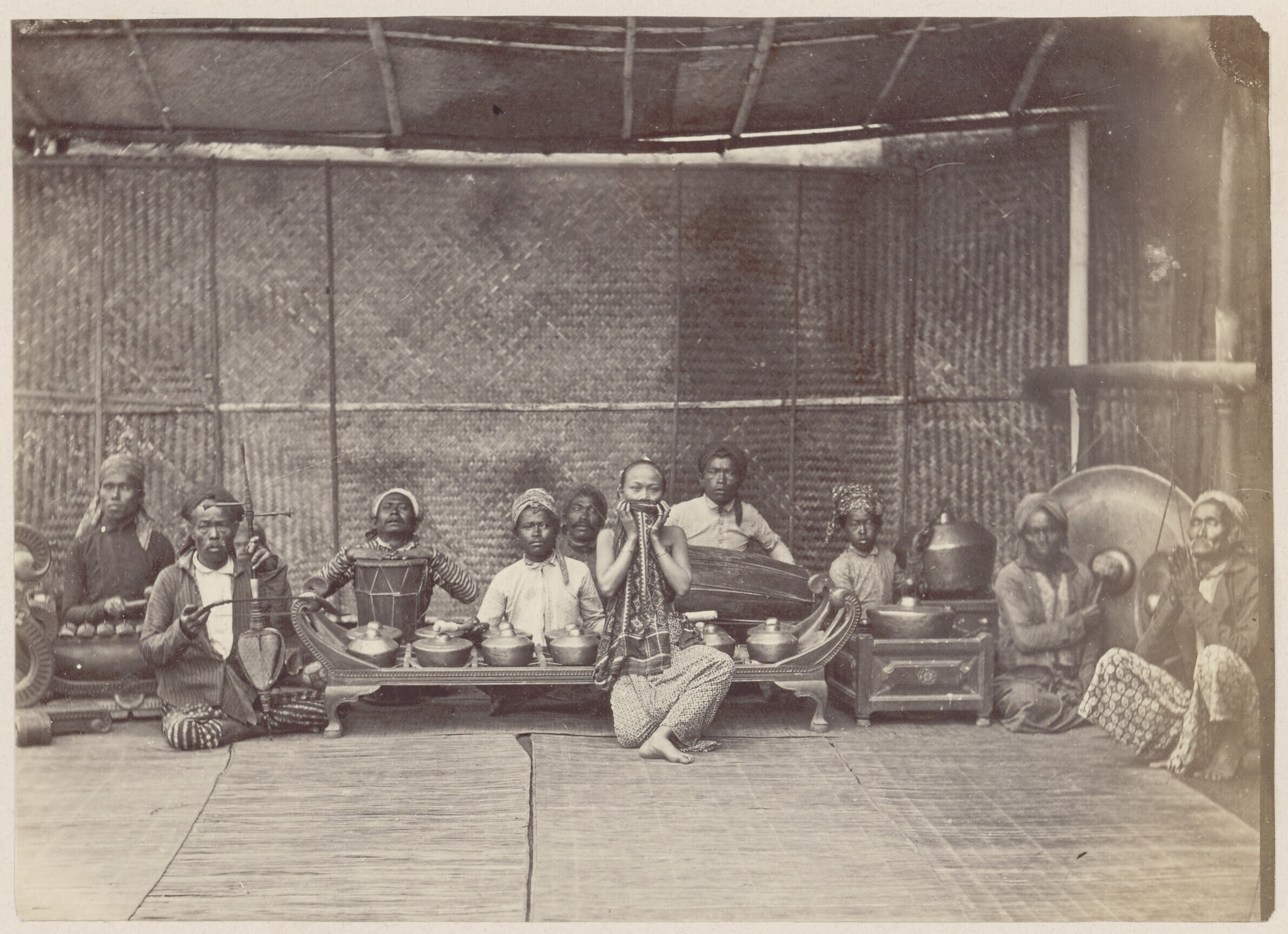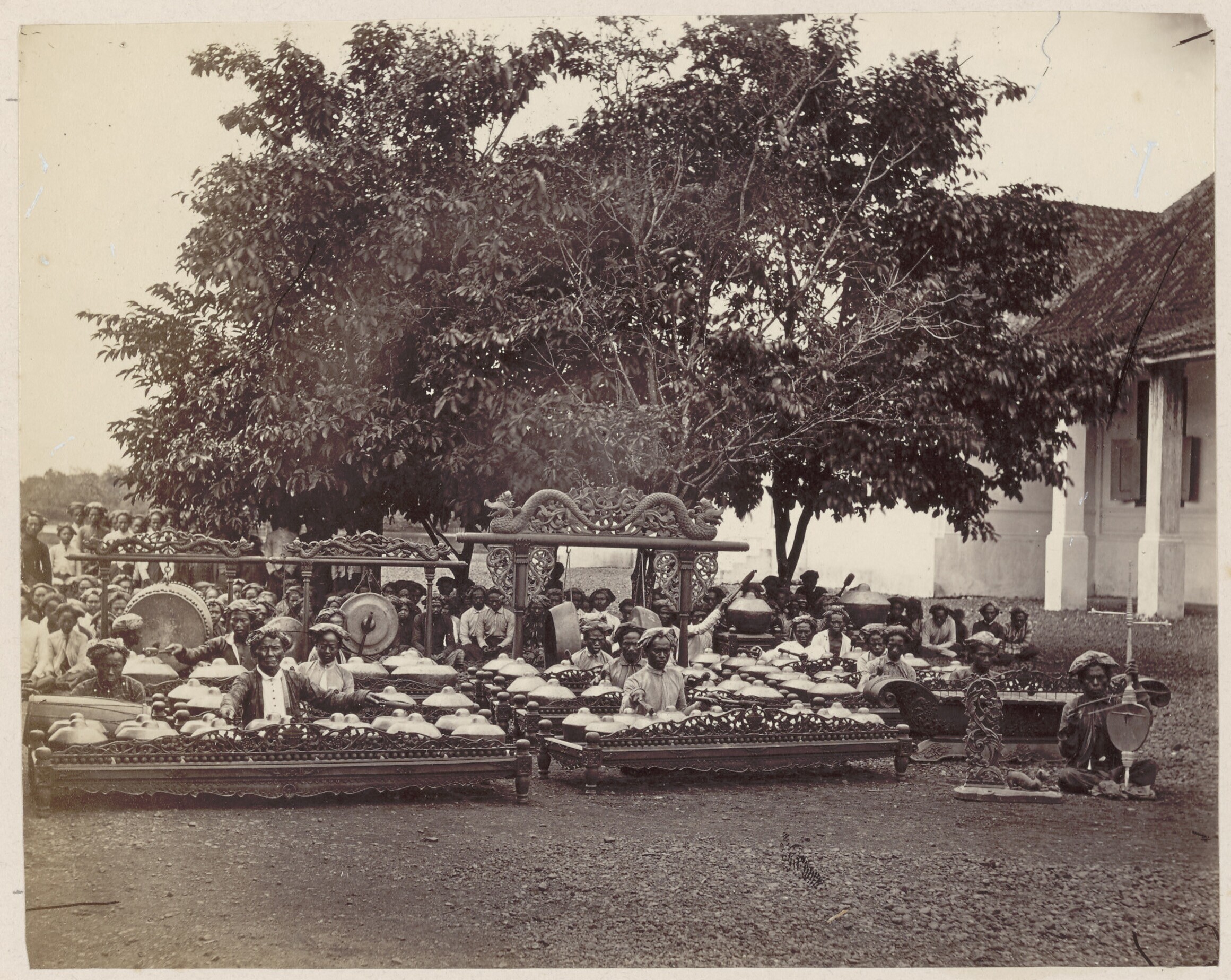 Het gamelan orkest van de regent van Bandoeng.