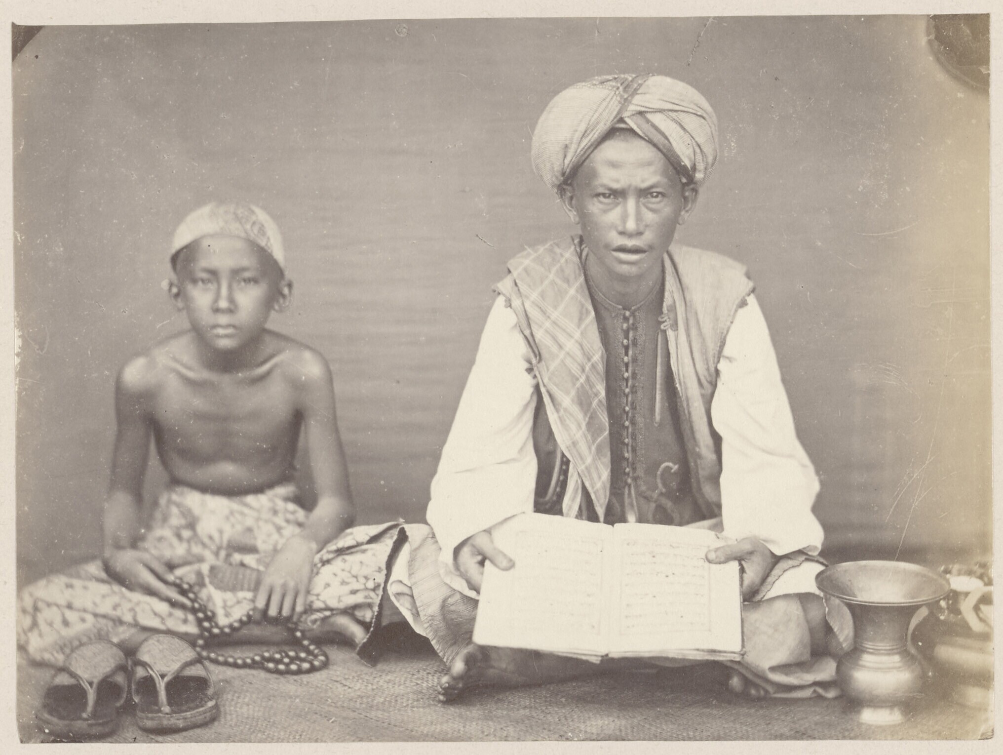 Een Islamitische leraar met gebedsboek en zijn leerl...