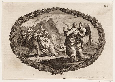 Johannes en de engel tegenover de zevenkoppige draak...