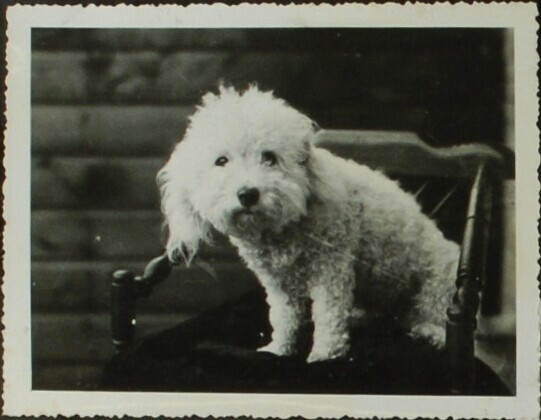 Poedel op stoel