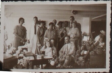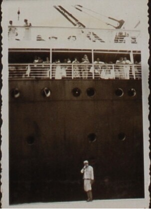 Groepsportret aan boord van een schip