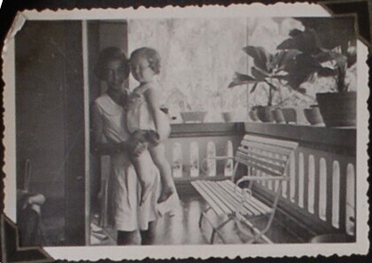 Vrouw met kind op veranda