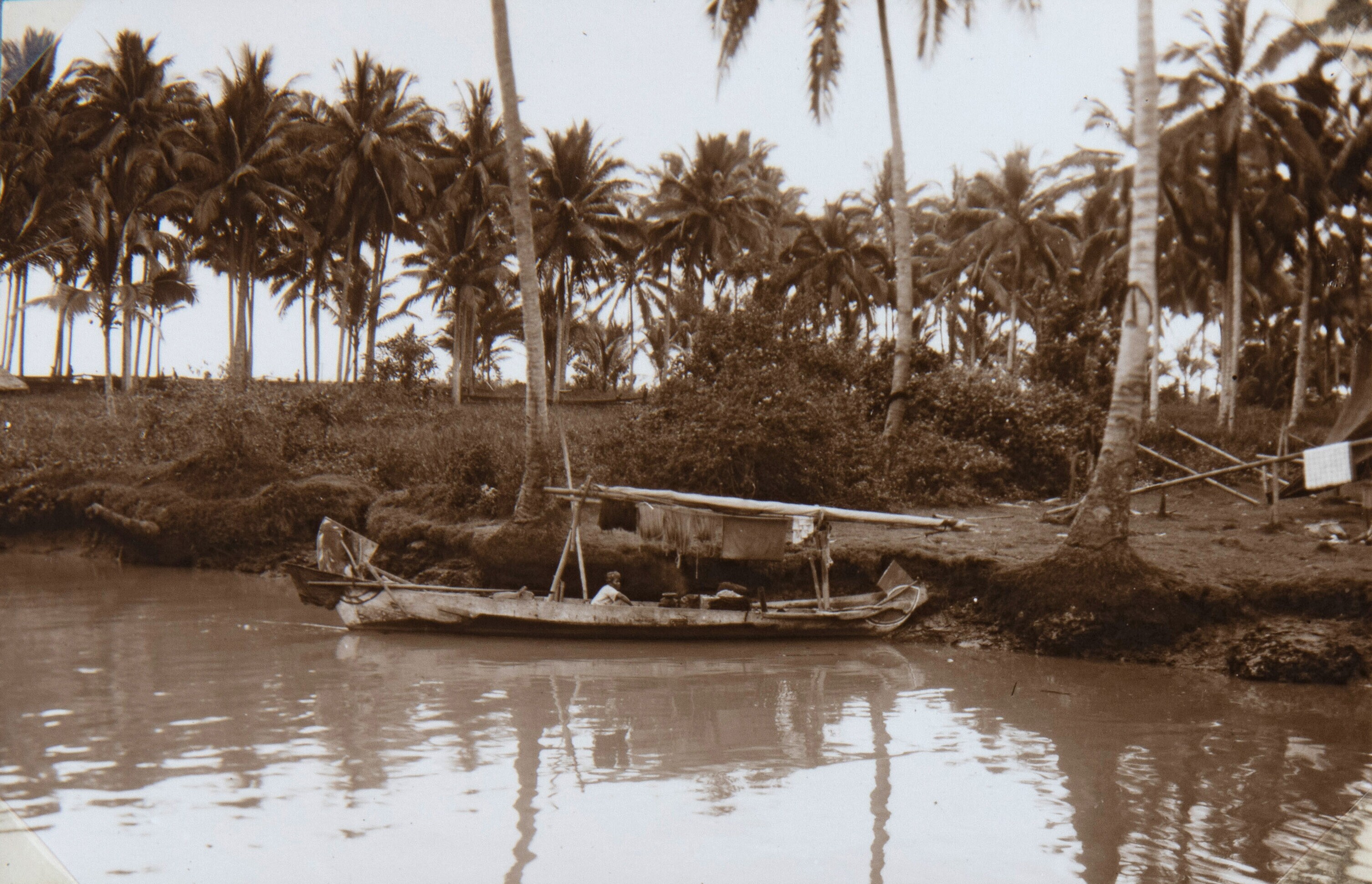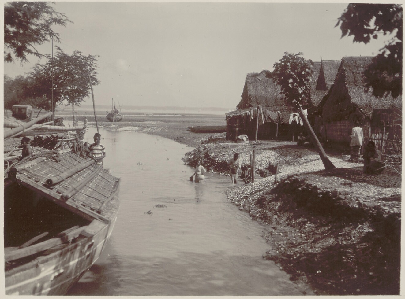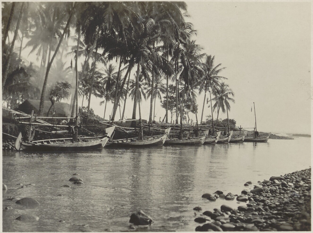 Prauwen bij de monding van de Anyer-rivier